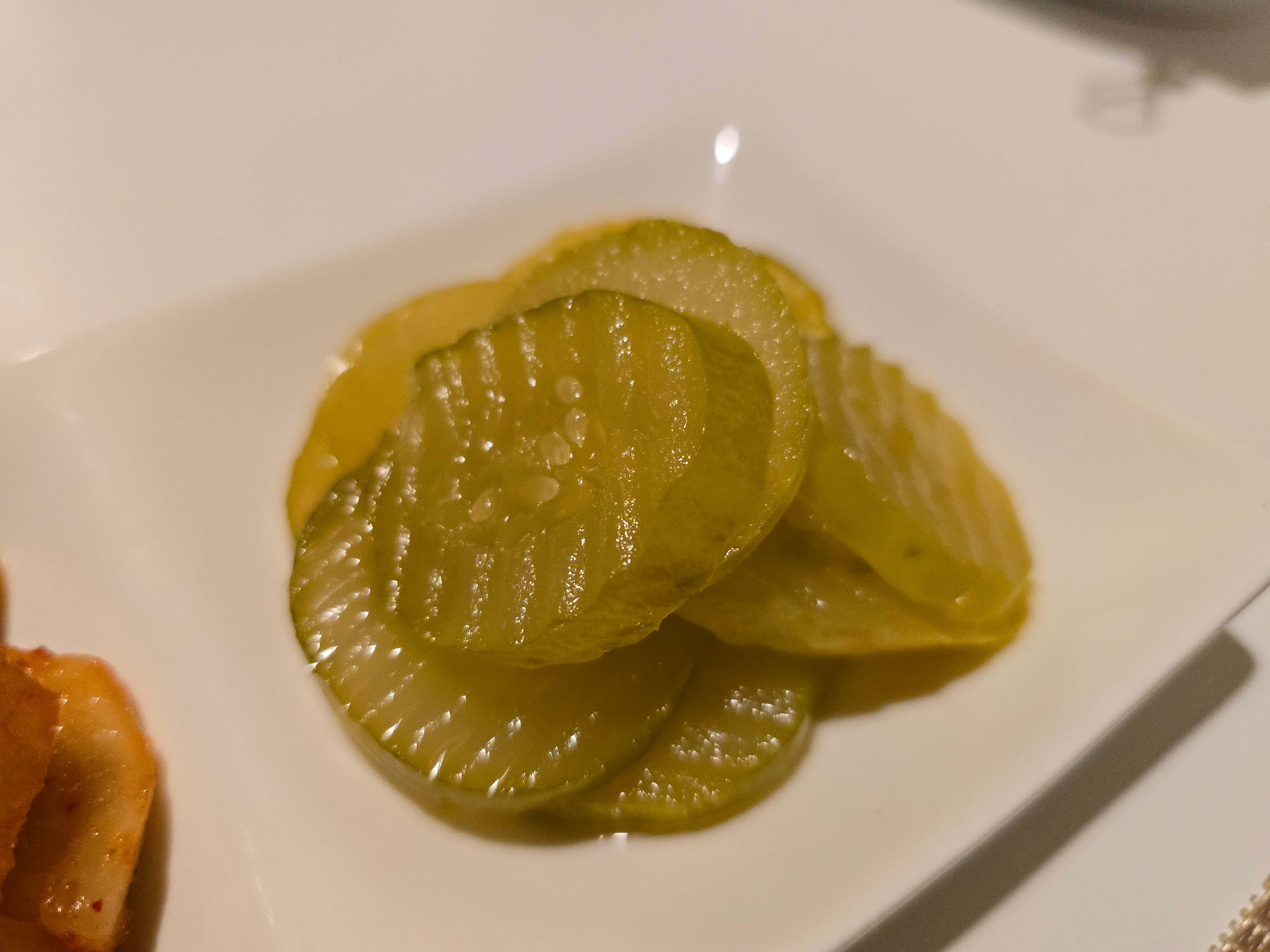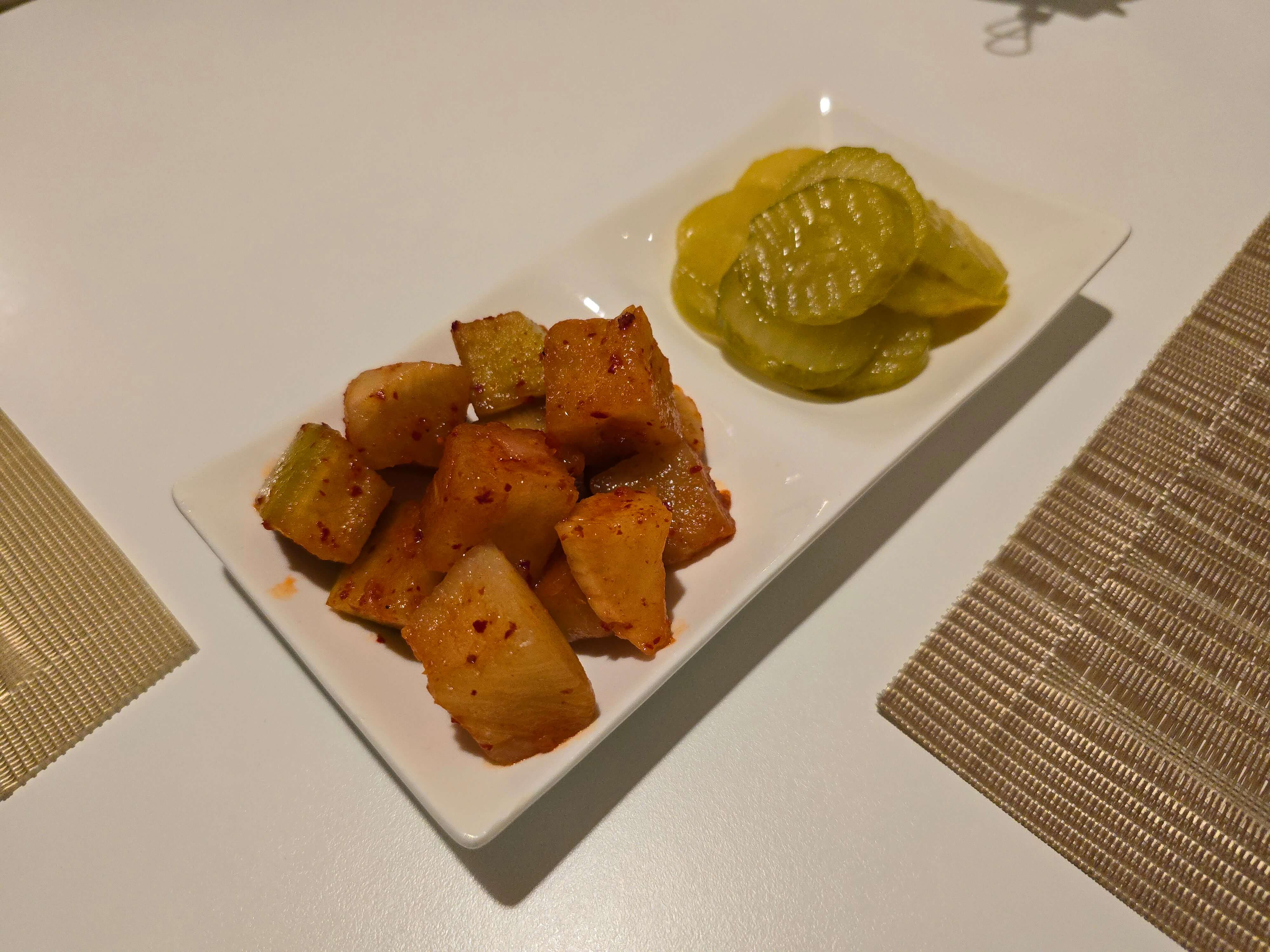 깍두기는 맛이 괜찮지만, 피클은 제 입맛에 맞지 않았습니다.