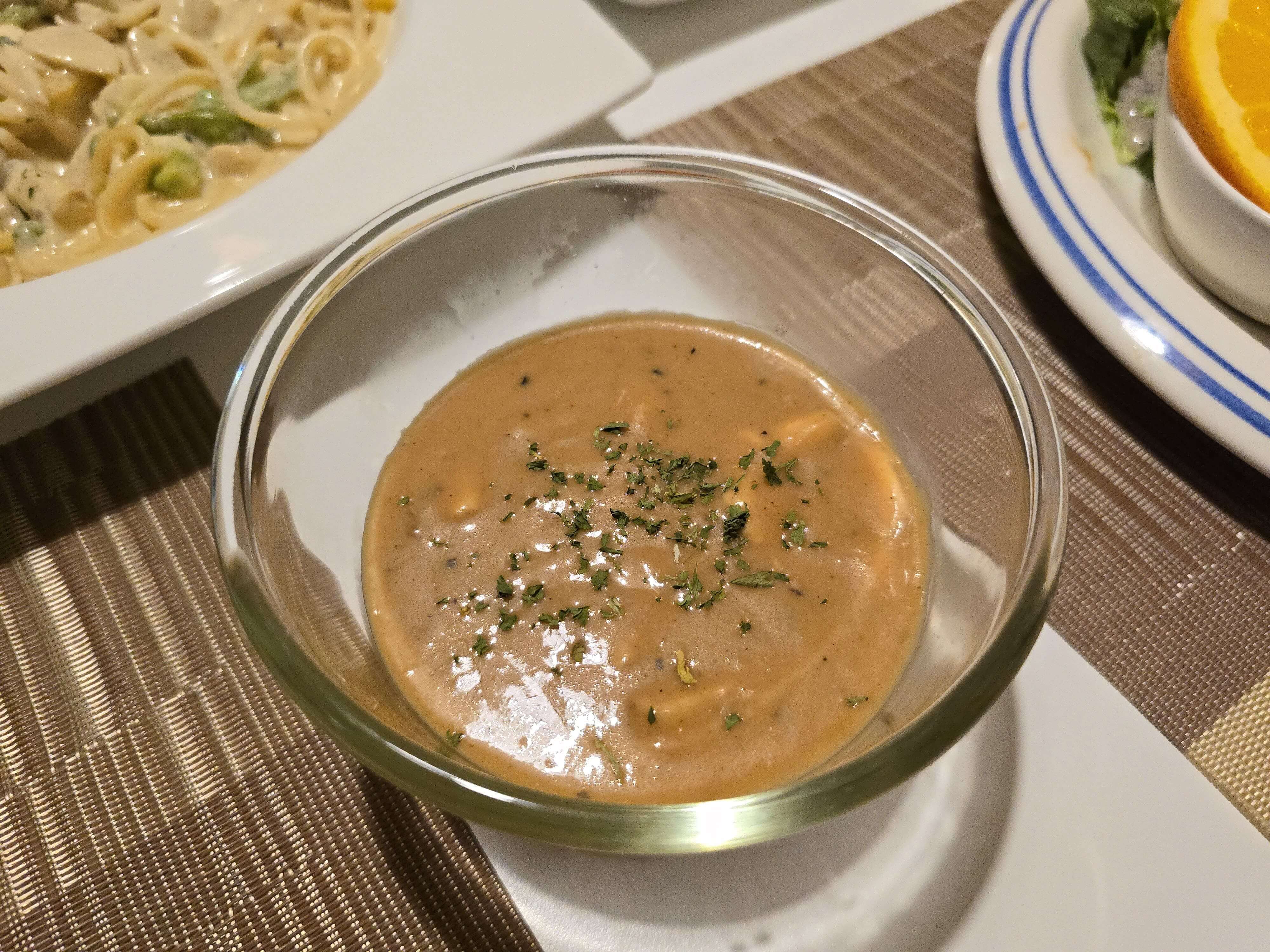 스프는 양송이스프이며, 후추가 미리 살짝 뿌려져서 나옵니다.