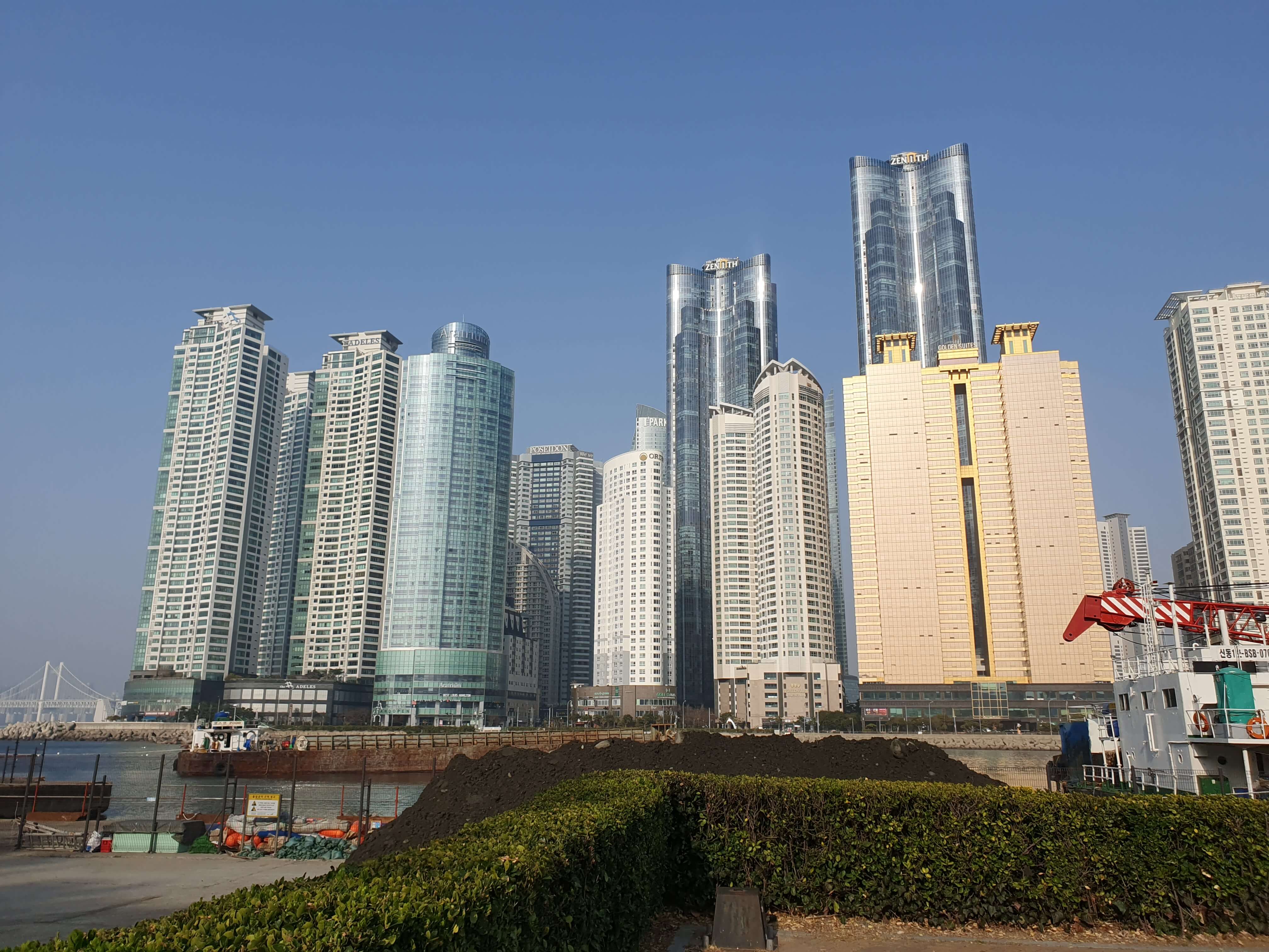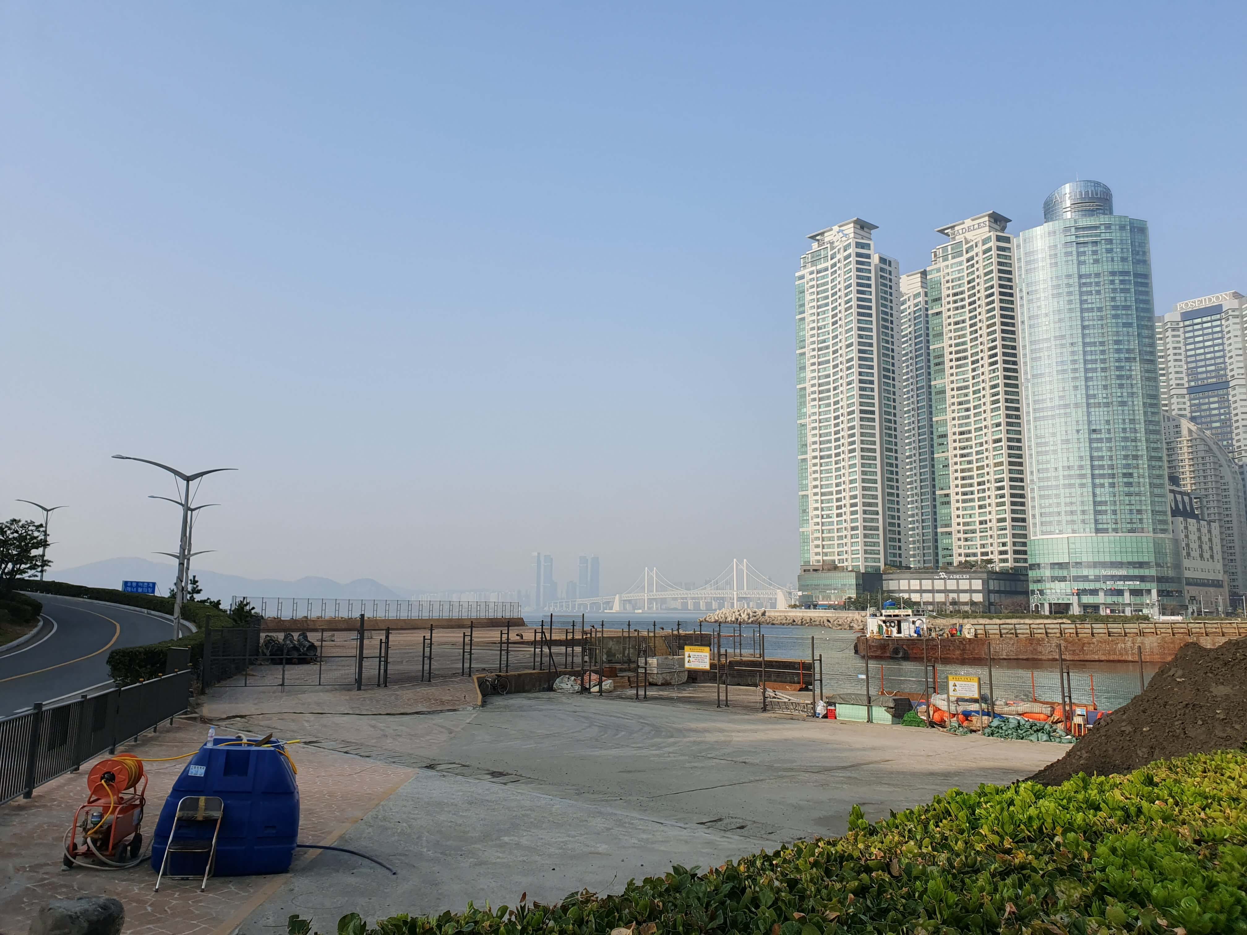 벤치에 앉아서 볼 수 있는 첫 번째 풍경인 마린시티입니다.