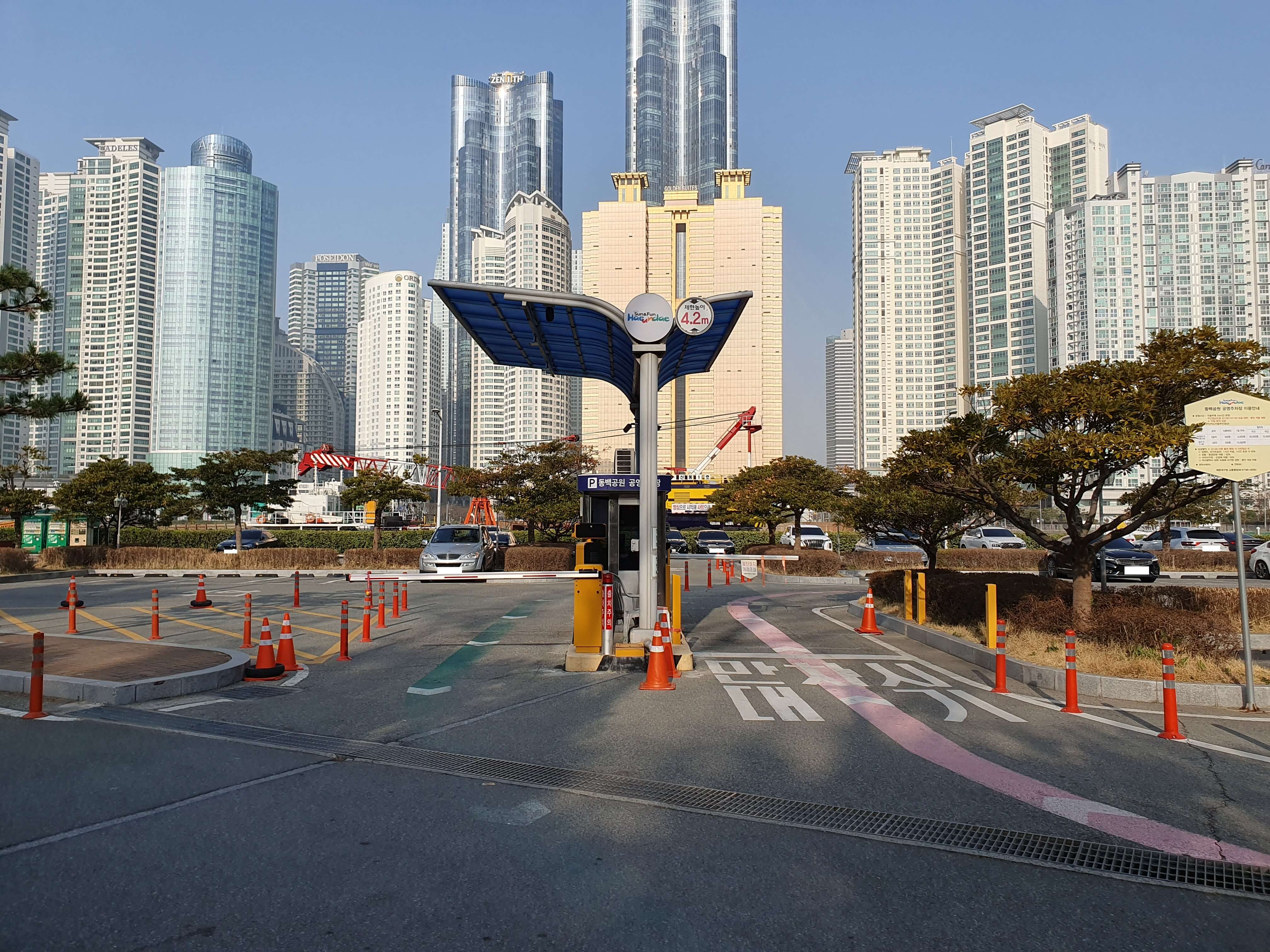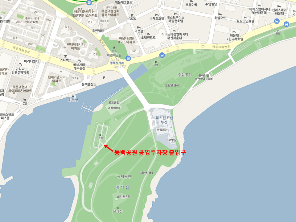 동백공원 공영주차장은 데베이101을 지나서 웨스틴조선호텔 인근에 위치해 있습니다.