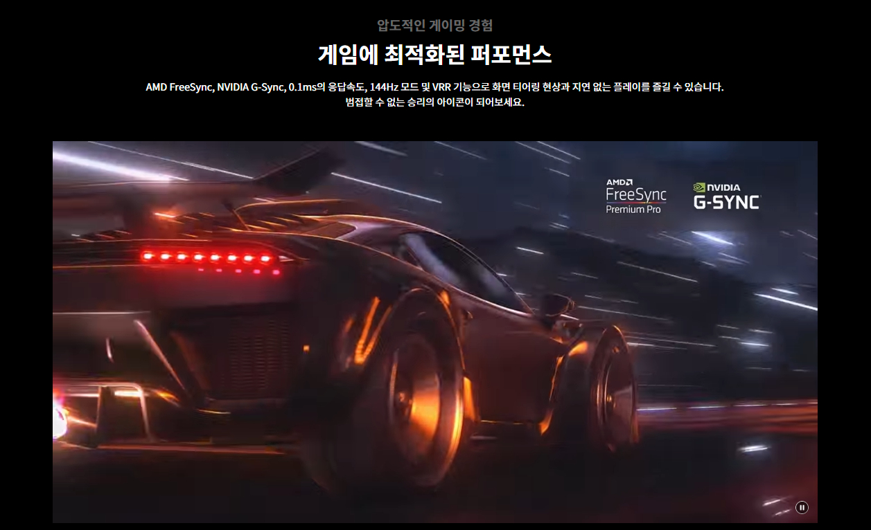 | 게이밍 | G-Sync Compatible ○ 프리싱크(FreeSync) ○ HGIG ○ 게임 맞춤 ○ (게이밍보드) ALLM (Auto Low Latency Mode) ○ VRR (Variable Refresh Rate) ○ |