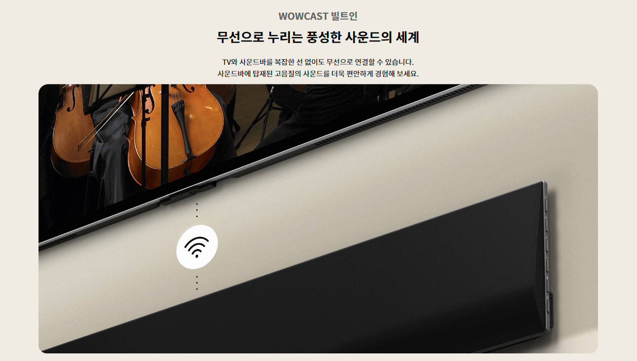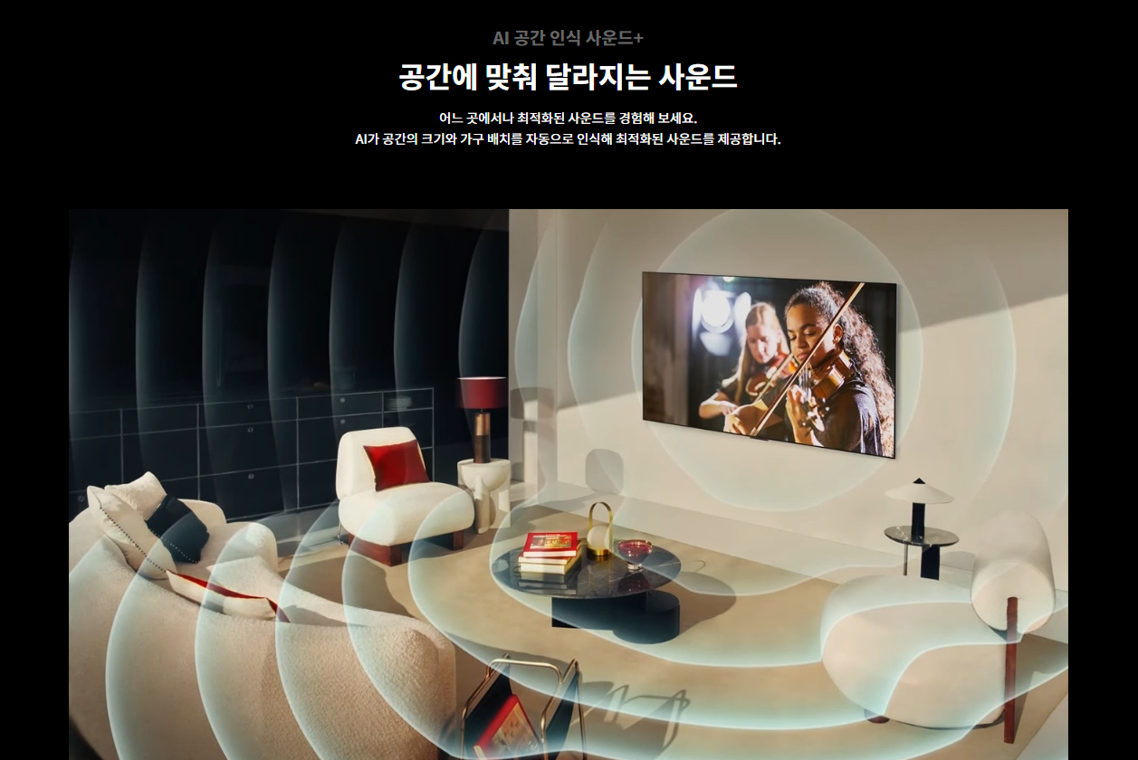| 사운드 | 스피커 출력 60W 스피커 채널 4.2ch 돌비 애트모스 ○ AI 사운드 AI 사운드 프로 (버츄얼 11.1.2) 클리어보이스 프로 ○ (AI 음성 리마스터링) AI 공간인식 사운드 ○ WiSA 지원 ○ (Up to 2.1 Channel) LG 사운드 싱크 ○ TV 사운드 공유 ○ Simultaneous Audio Output ○ 블루투스 서라운드 레디 ○ (2 Way Playback) 오디오 지원 코덱 AC4, AC3(Dolby Digital), EAC3, HE-AAC, AAC, MP2, MP3, PCM, WMA, apt-X (Refer to manual) |
