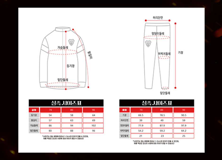 1-2. 키즈트레이닝복 사이즈표