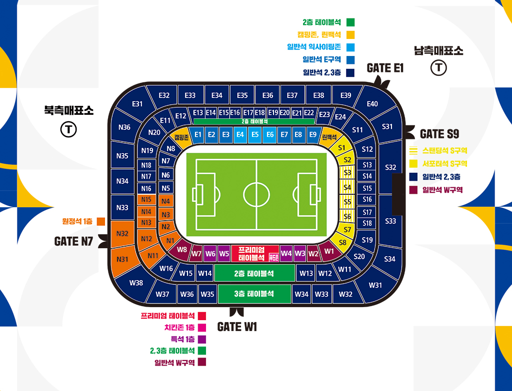 | 일반석 | W 1, 2구역 (K리그 홈벤치 방향) |
