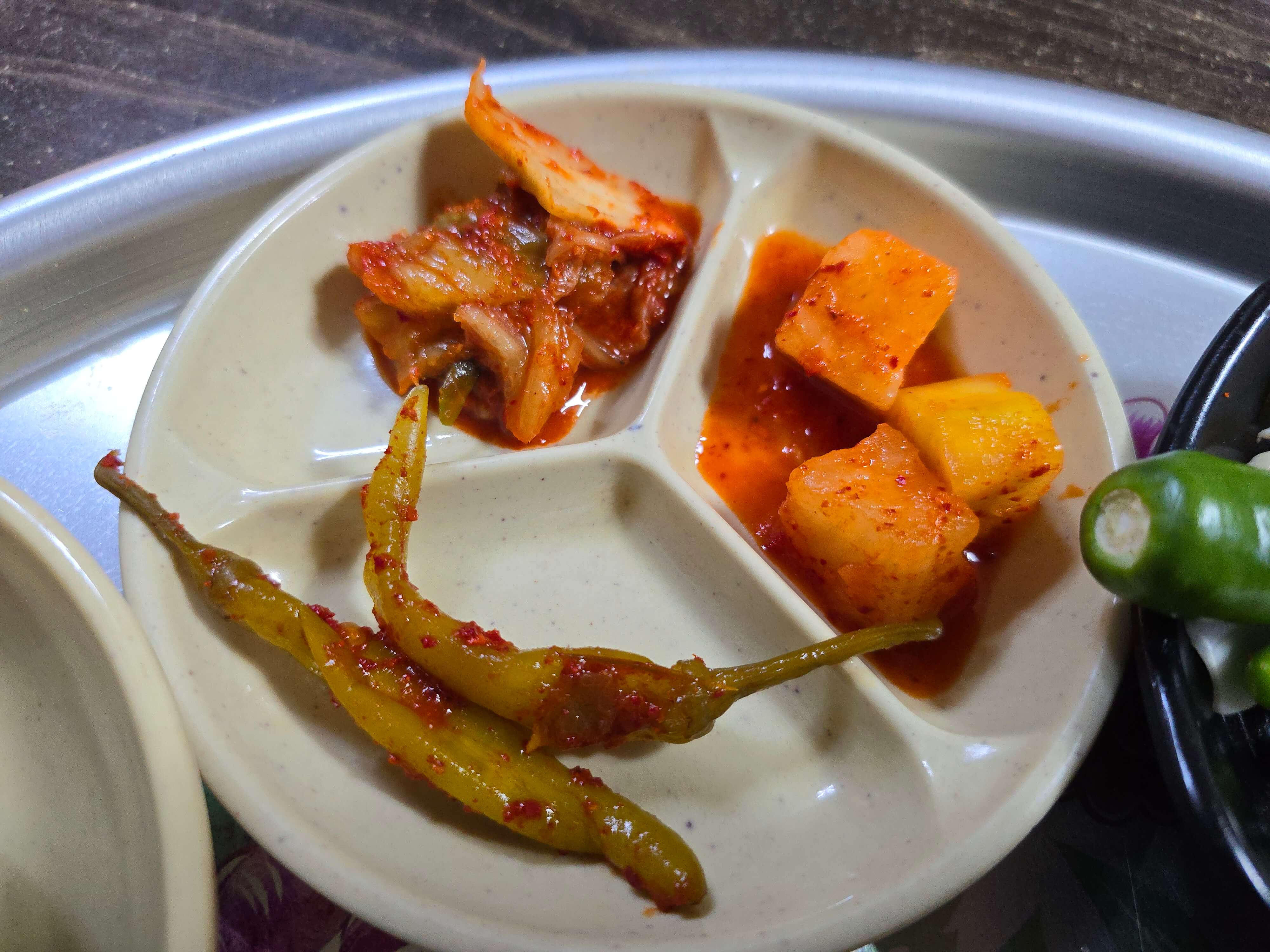 김치, 깍두기, 고추장아찌(?)도 다 맛있었습니다.