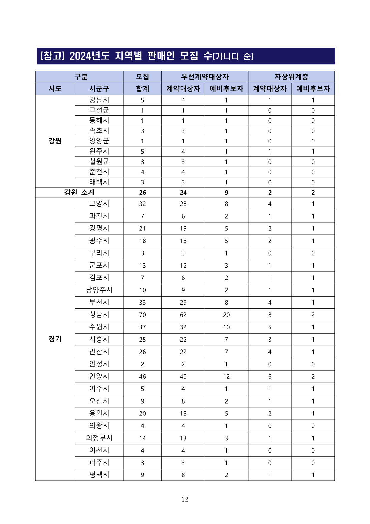 - 별지「2024년 지역별 판매인 모집 수」참조