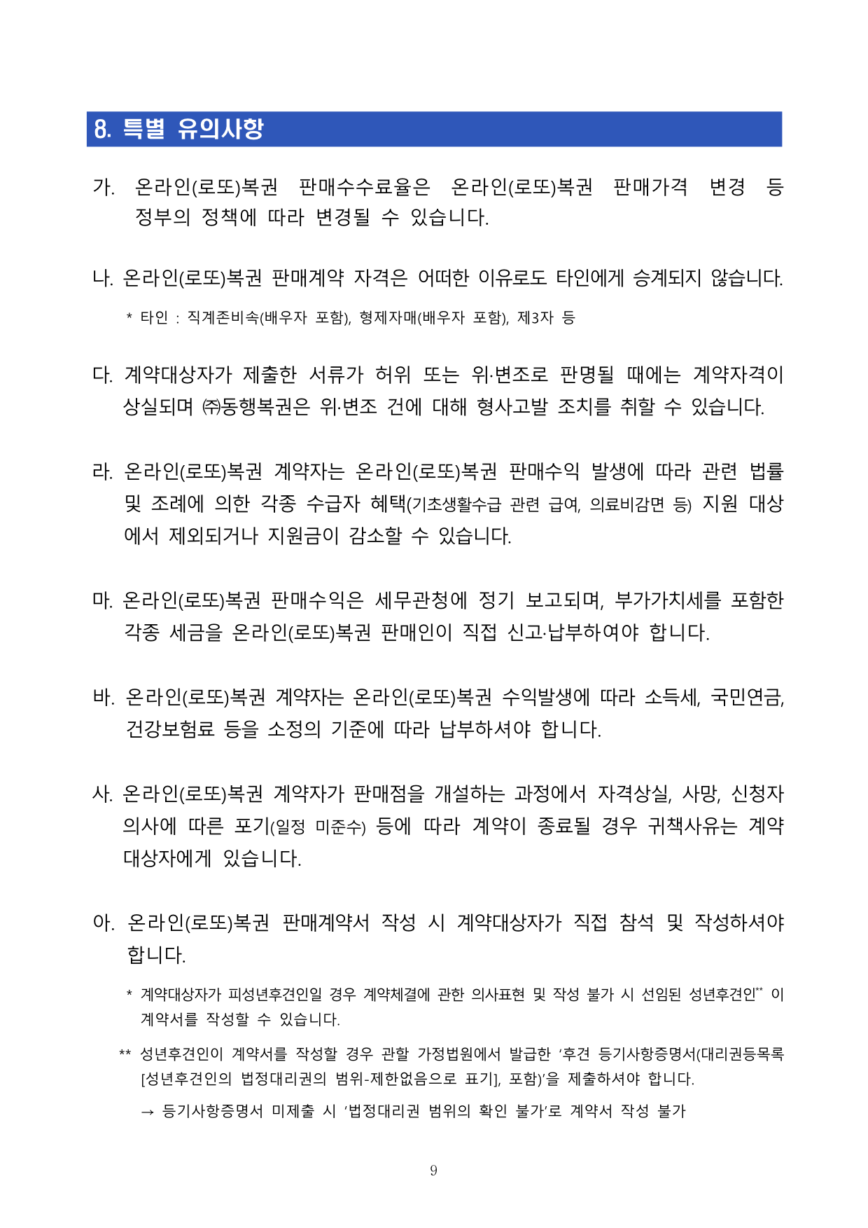 7. 온라인(로또)복권 판매인 계약 관련 사항