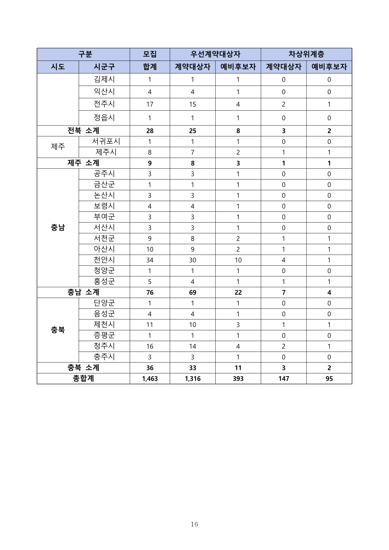 다. 지역별 모집인원