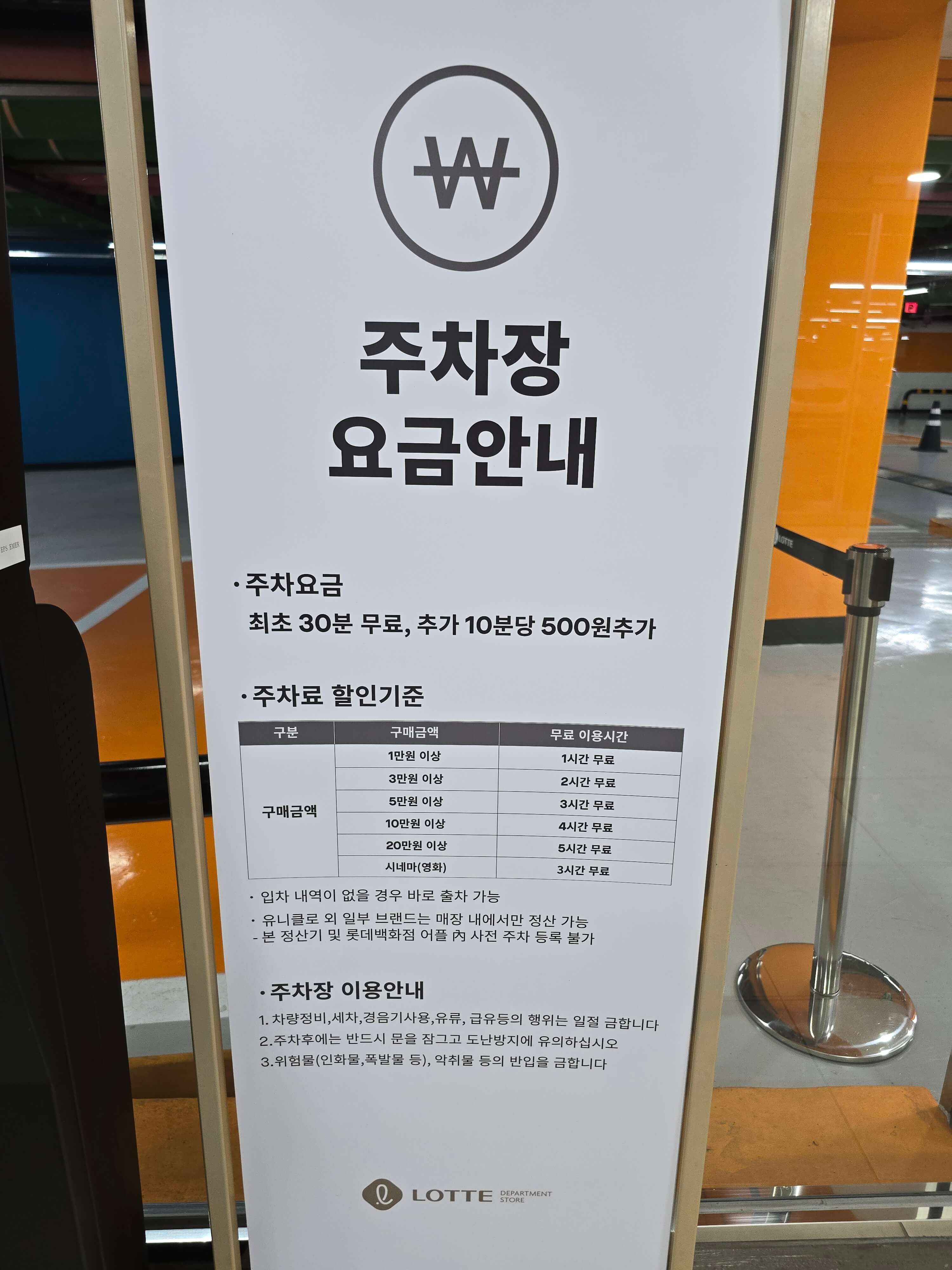 - 본 정산기 및 롯데백화점 어플 내 사전 주차 등록 불가