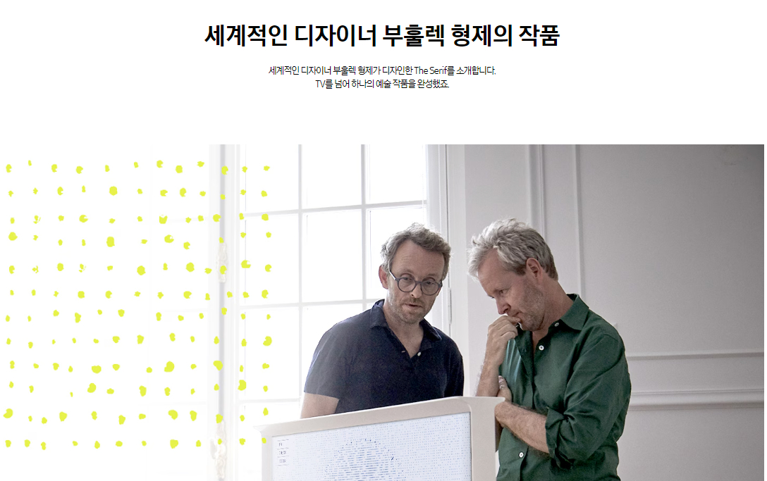 | 디자인 | 두께 타입 Slim look 디자인 Serif Design 베젤 타입 VNB 전면부 색상 CLOUD WHITE 스탠드 타입 METAL FLOOR STAND 스탠드 컬러 BLACK |