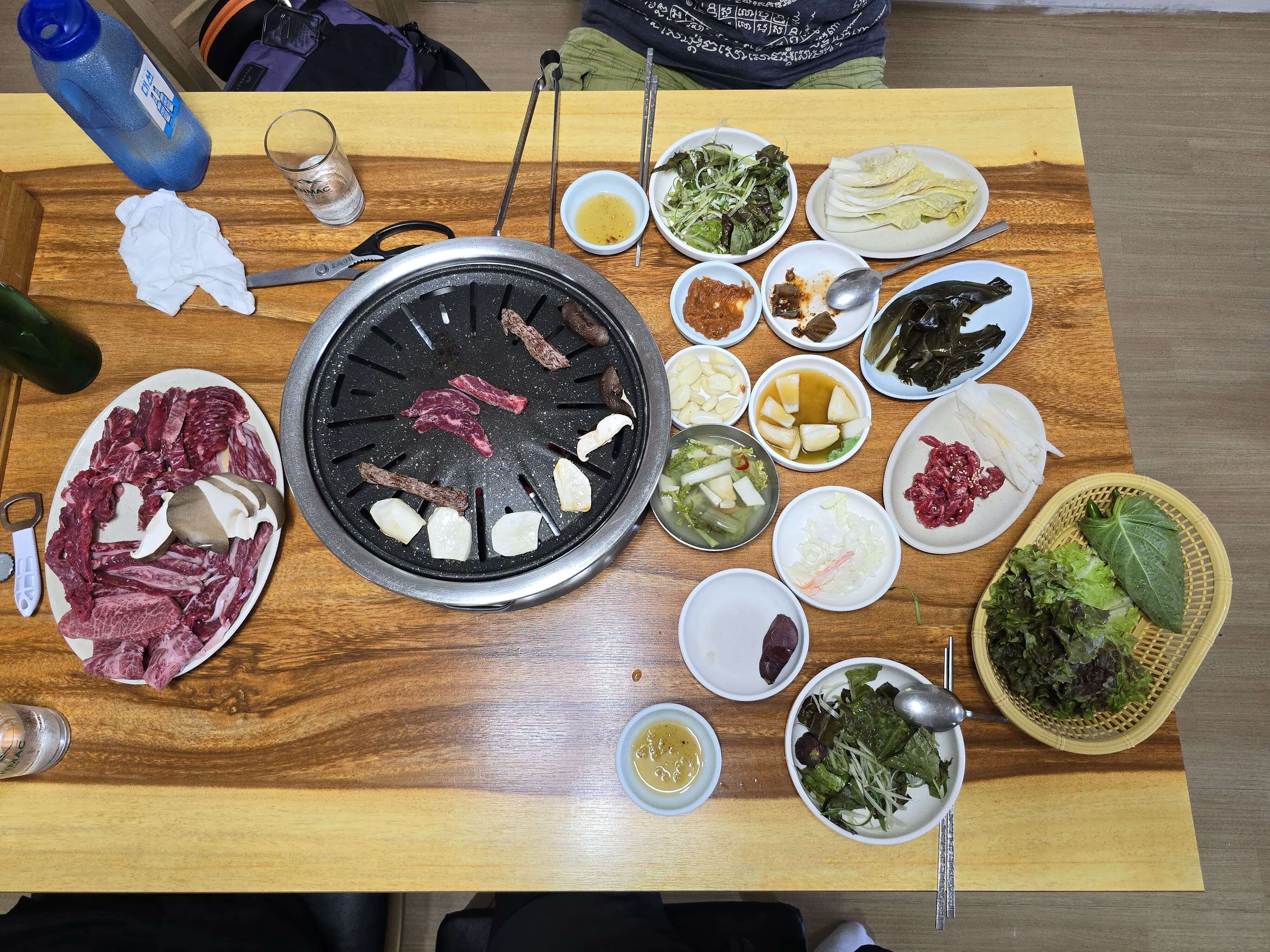 에어컨을 아주 빵빵하게 틀어주어서 고기를 굽고 식사를 하는 동안 아주 시원했습니다.