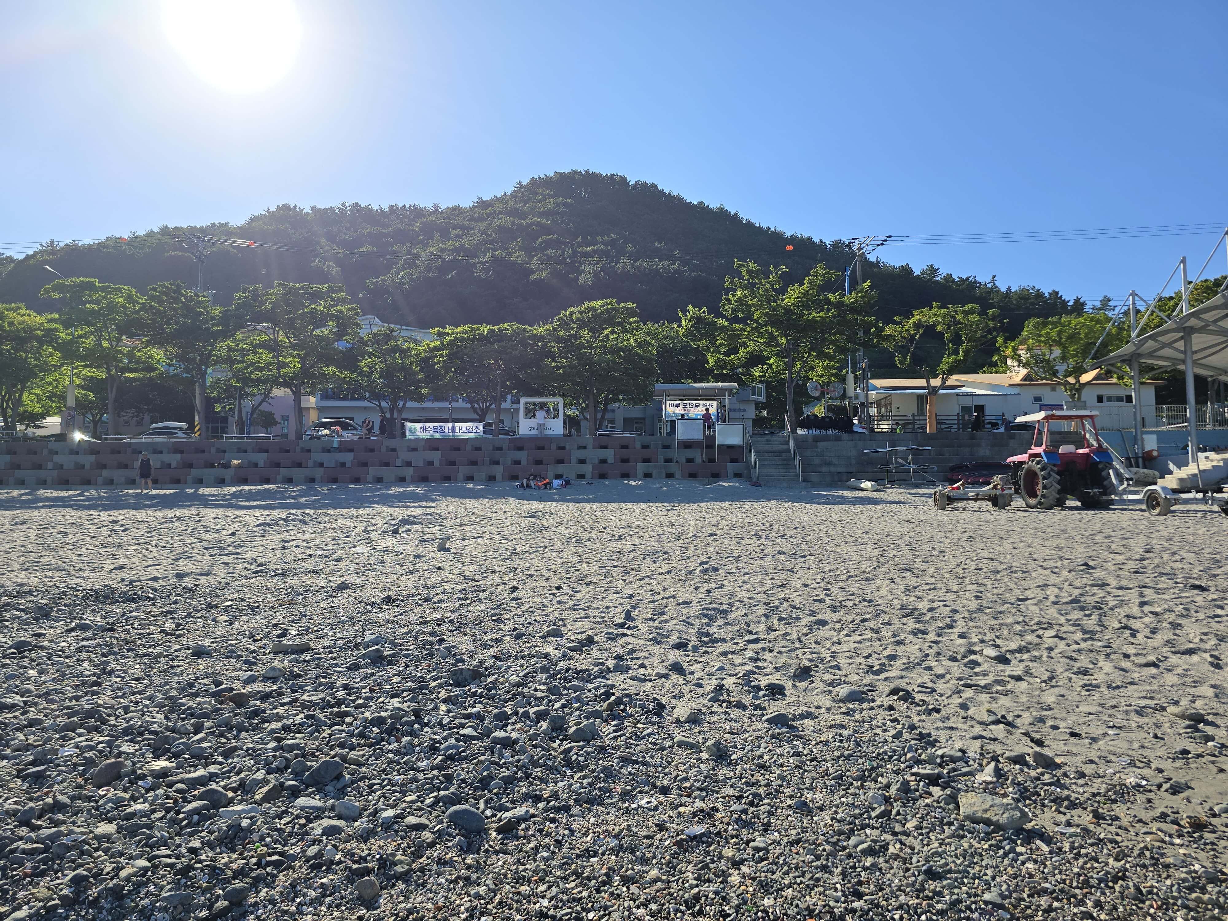 백사장 모래가 상주은모래, 송정솔바람보다 굵고, 자갈돌도 많아서 신발을 신고 다니는게 좋습니다.