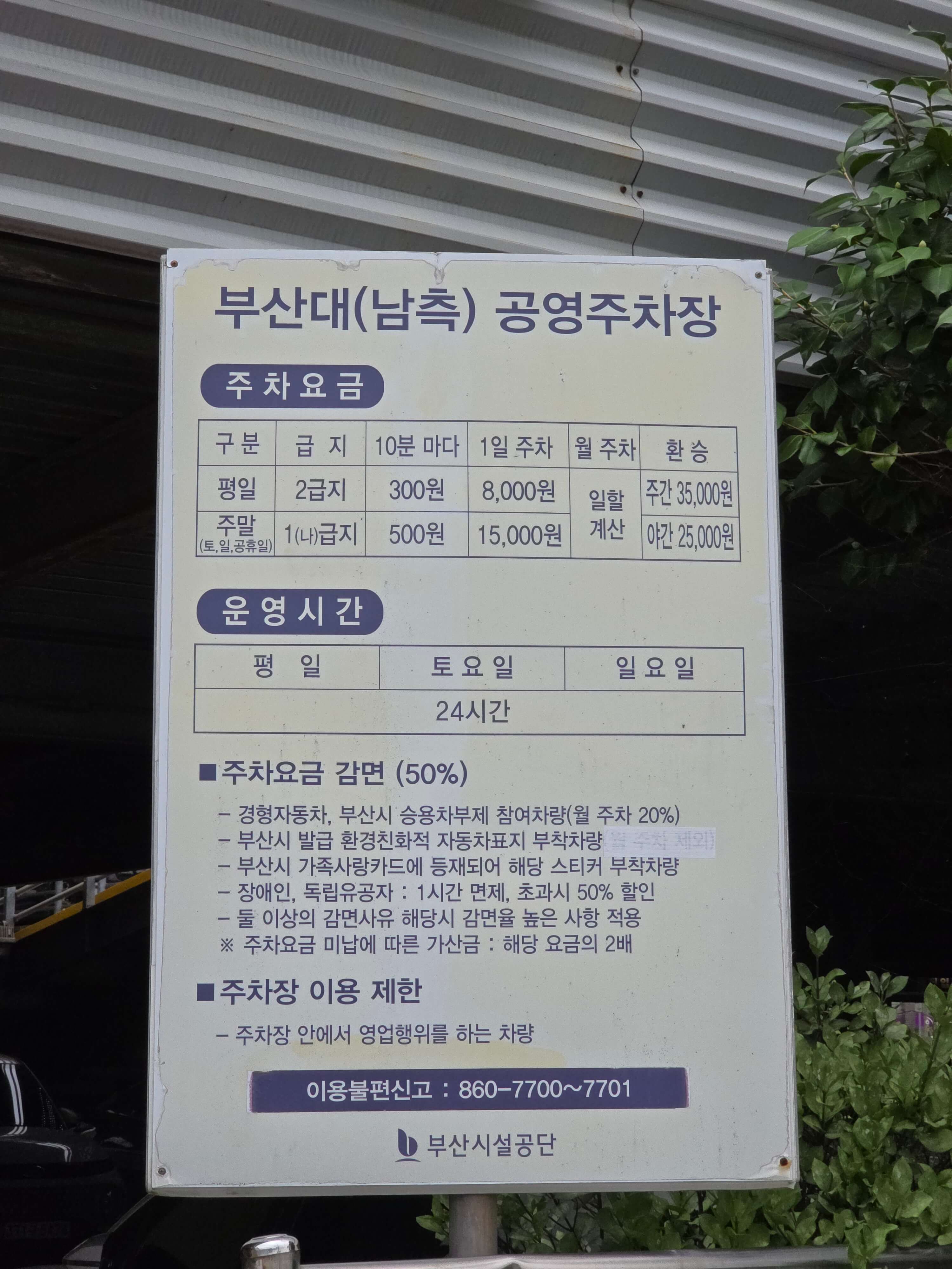 지하철 1호선 부산대역 앞 부산대남측 공영주차장 위치 및 주차비