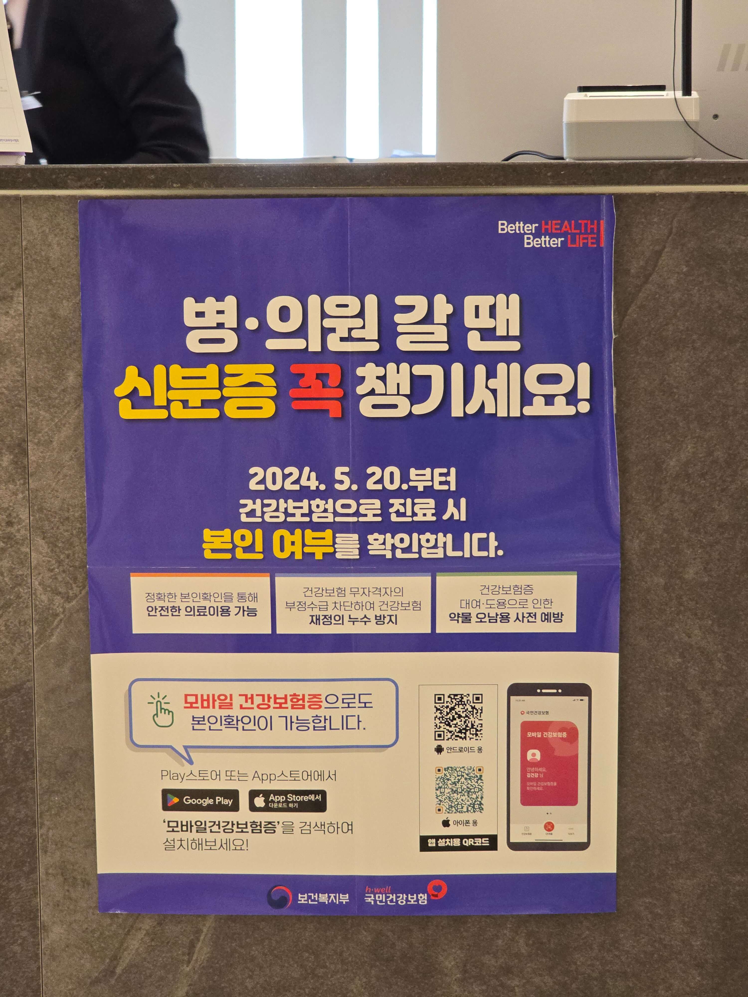 병원, 의원 갈 땐 신분증을 꼭 챙기시길 바랍니다.