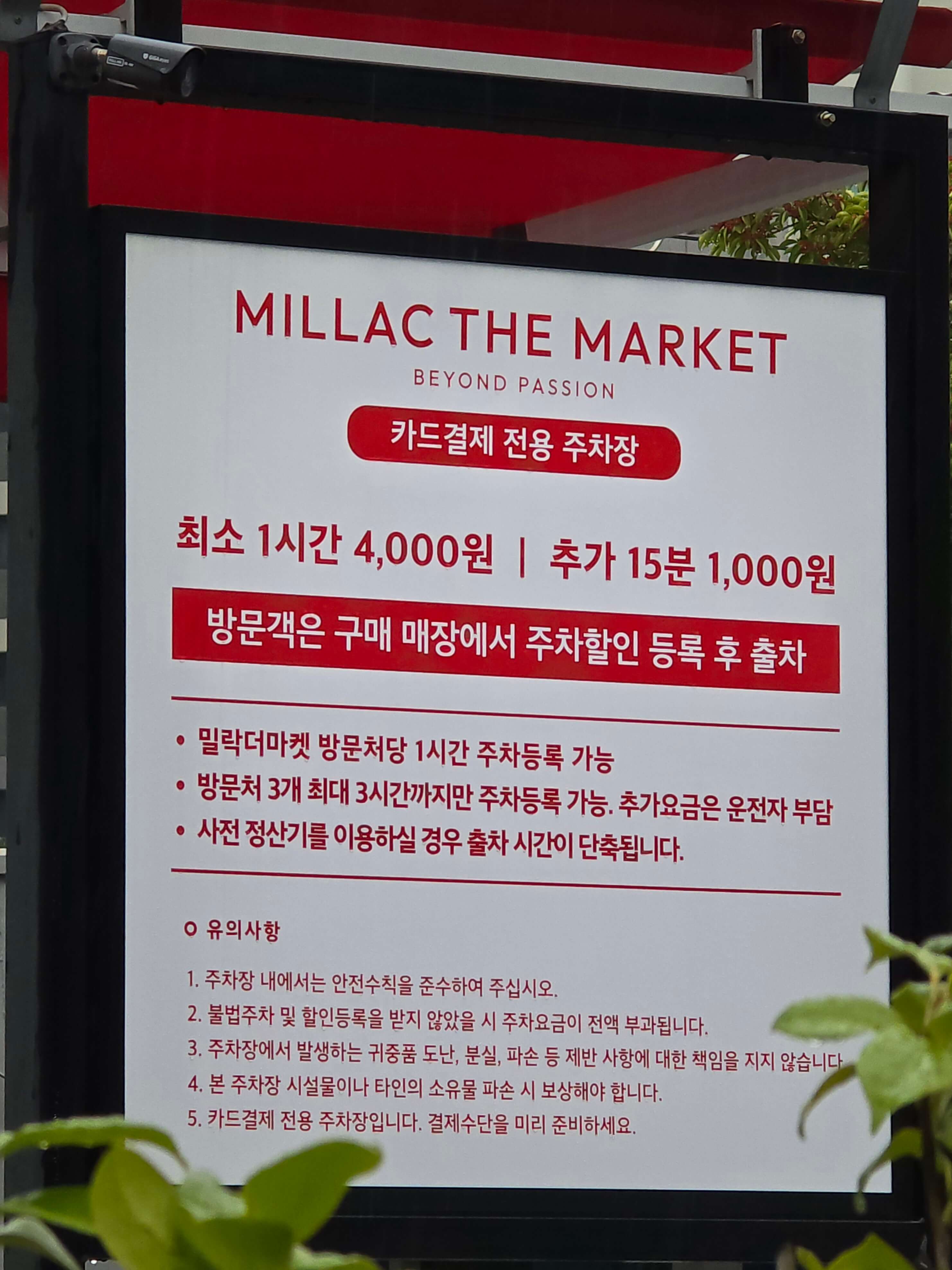 - 밀락더마켓 방문처당 1시간 주차등록 가능
