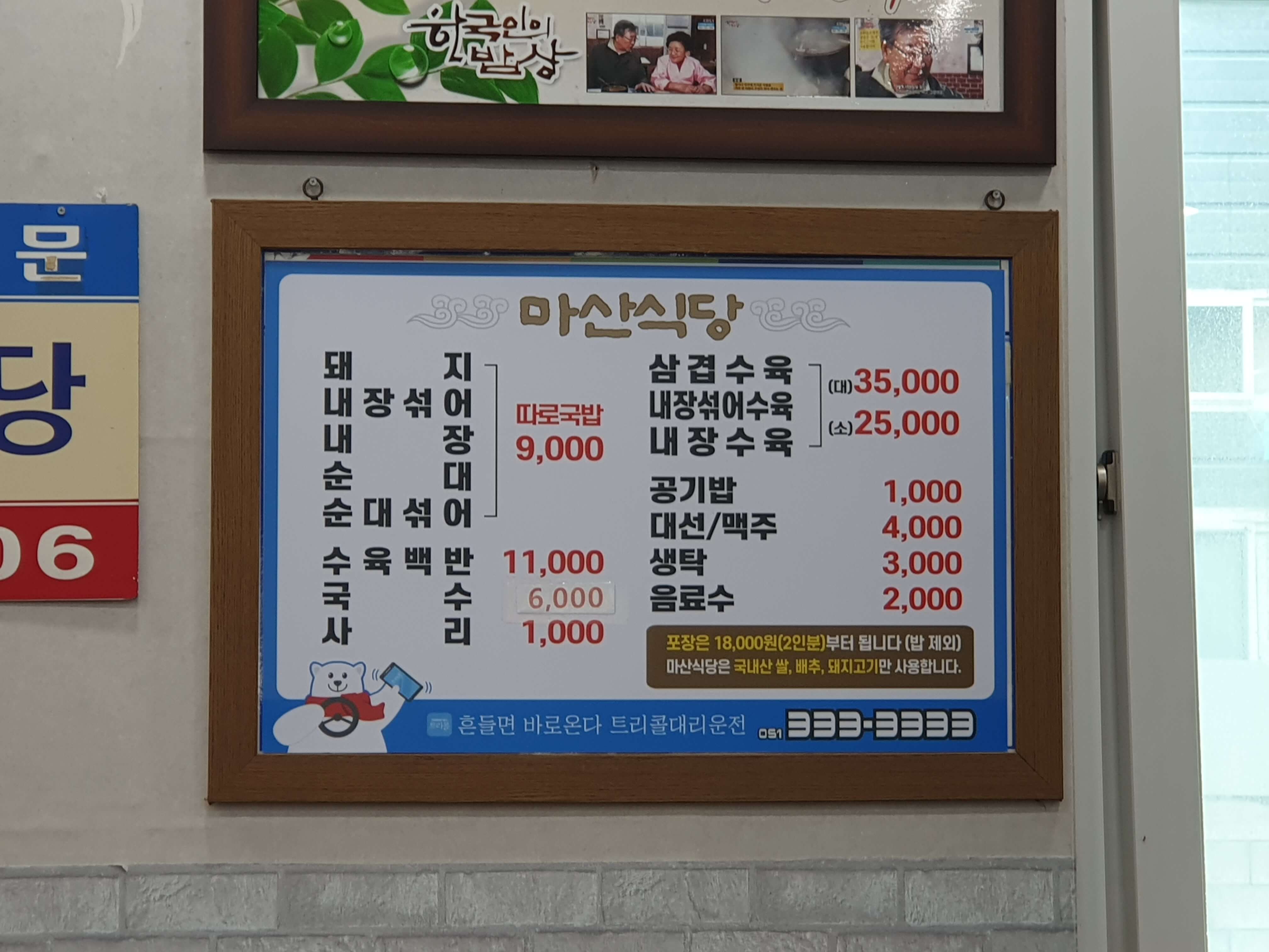 마산식당 옆의 하동식당이나 합천식당을 추천합니다.