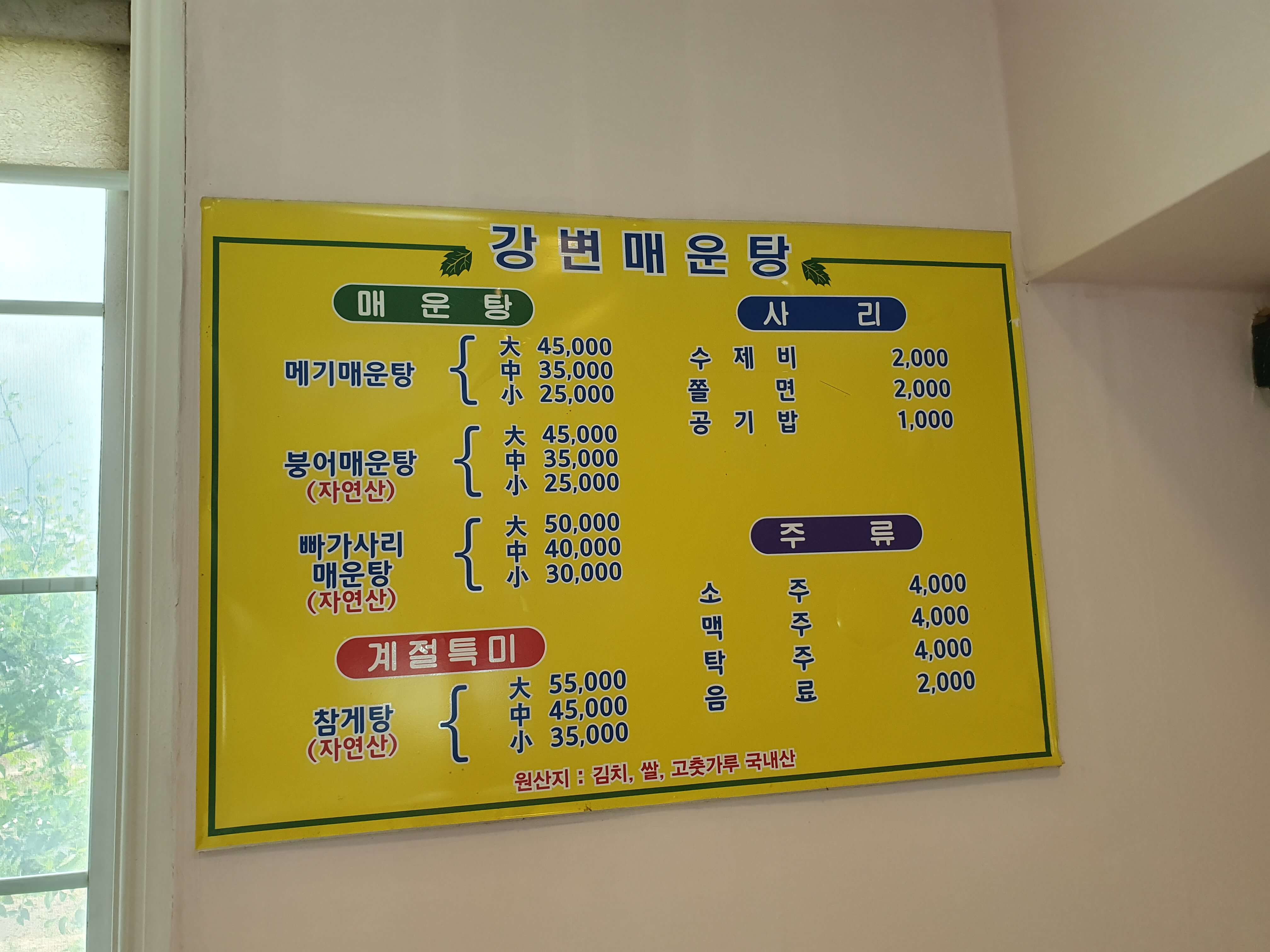 - 주메뉴 : 메기매운탕, 붕어매운탕, 빠가사리매운탕, 참게탕