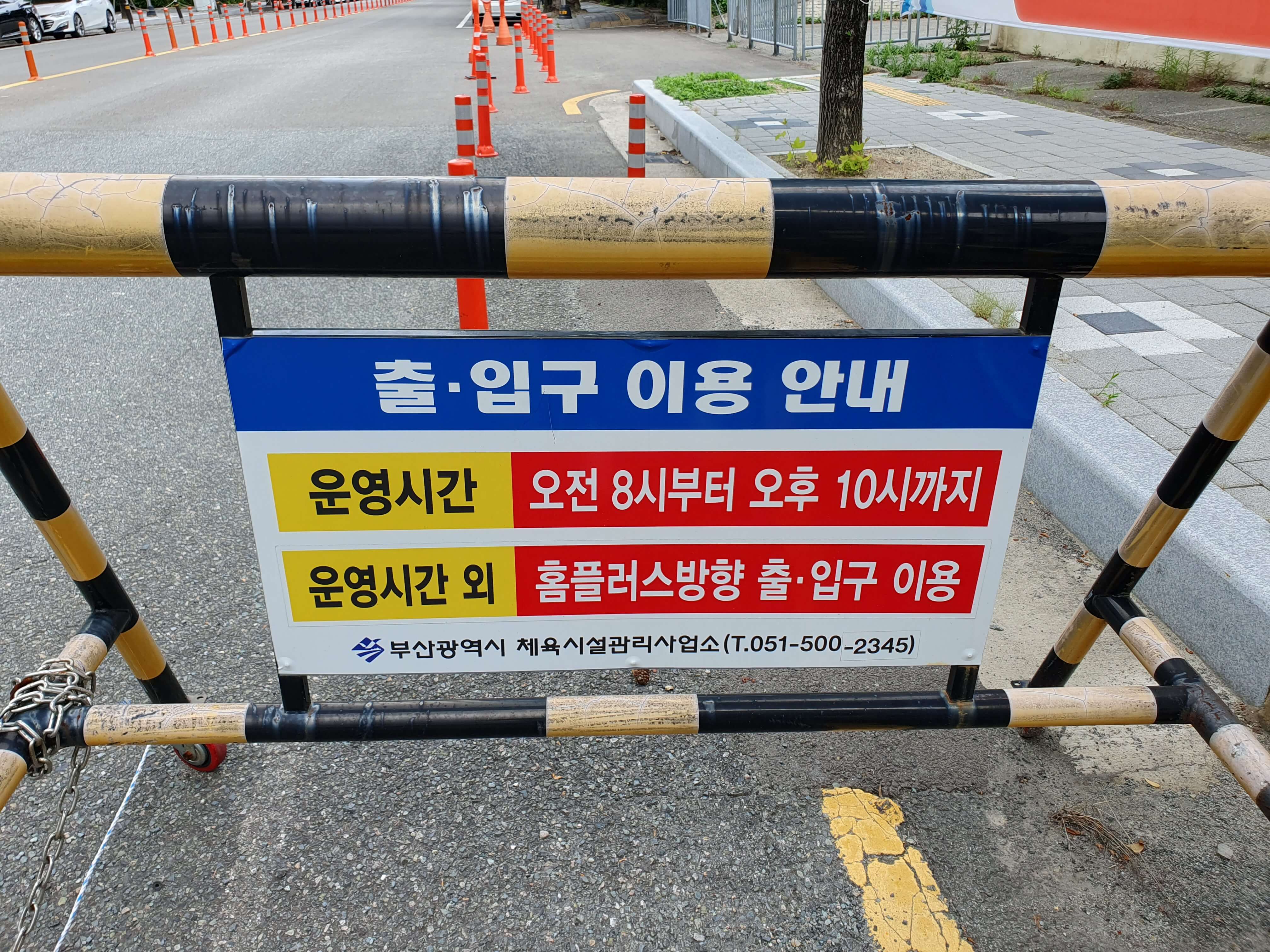 부산사직종합운동장주차장 출입구(아시아드코오롱하늘채아파트 방향)