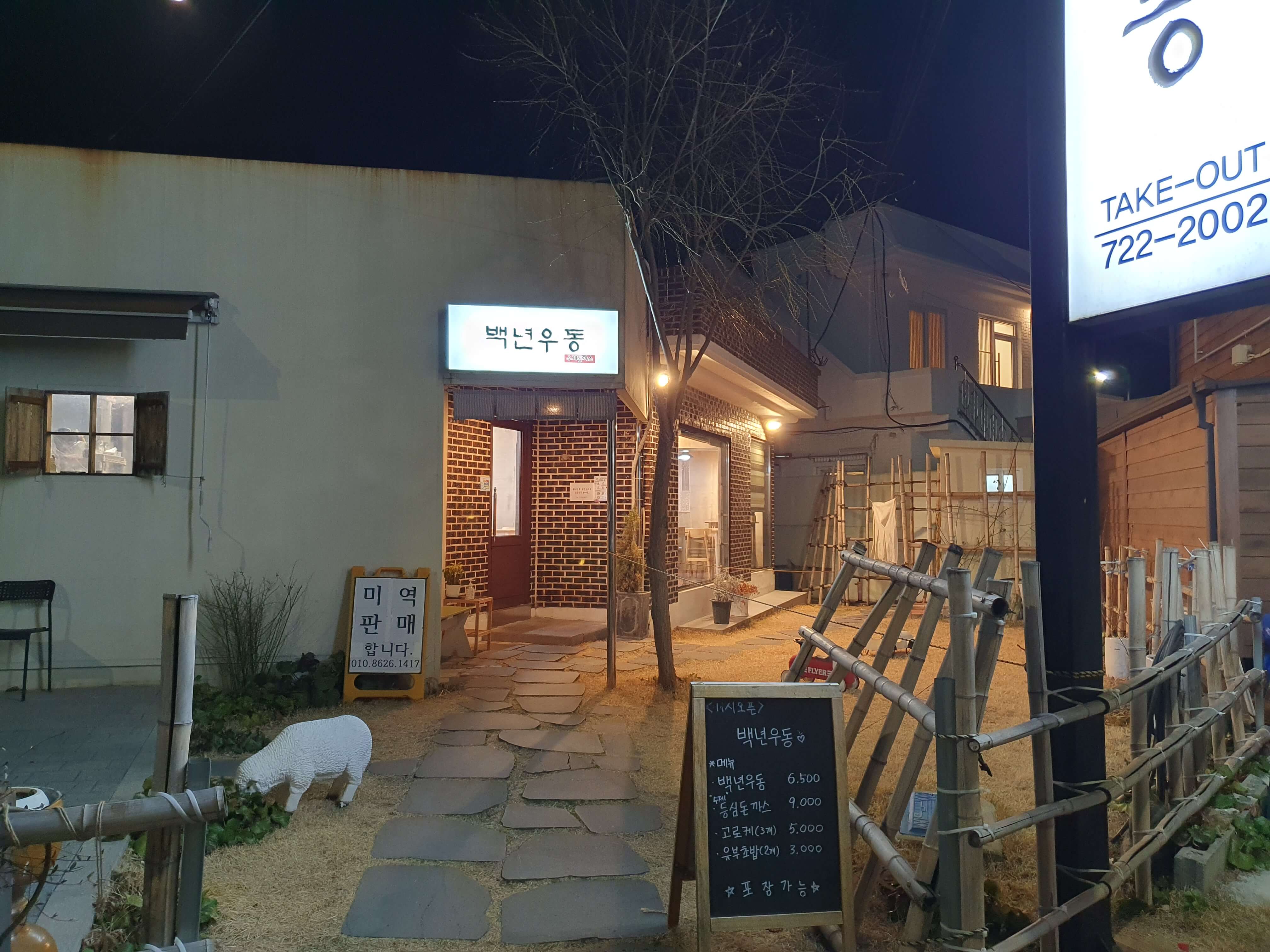 백년우동은 일광해수욕장 끝 초장집들이 모여있는 곳에 위치한 우동을 파는 식당입니다.