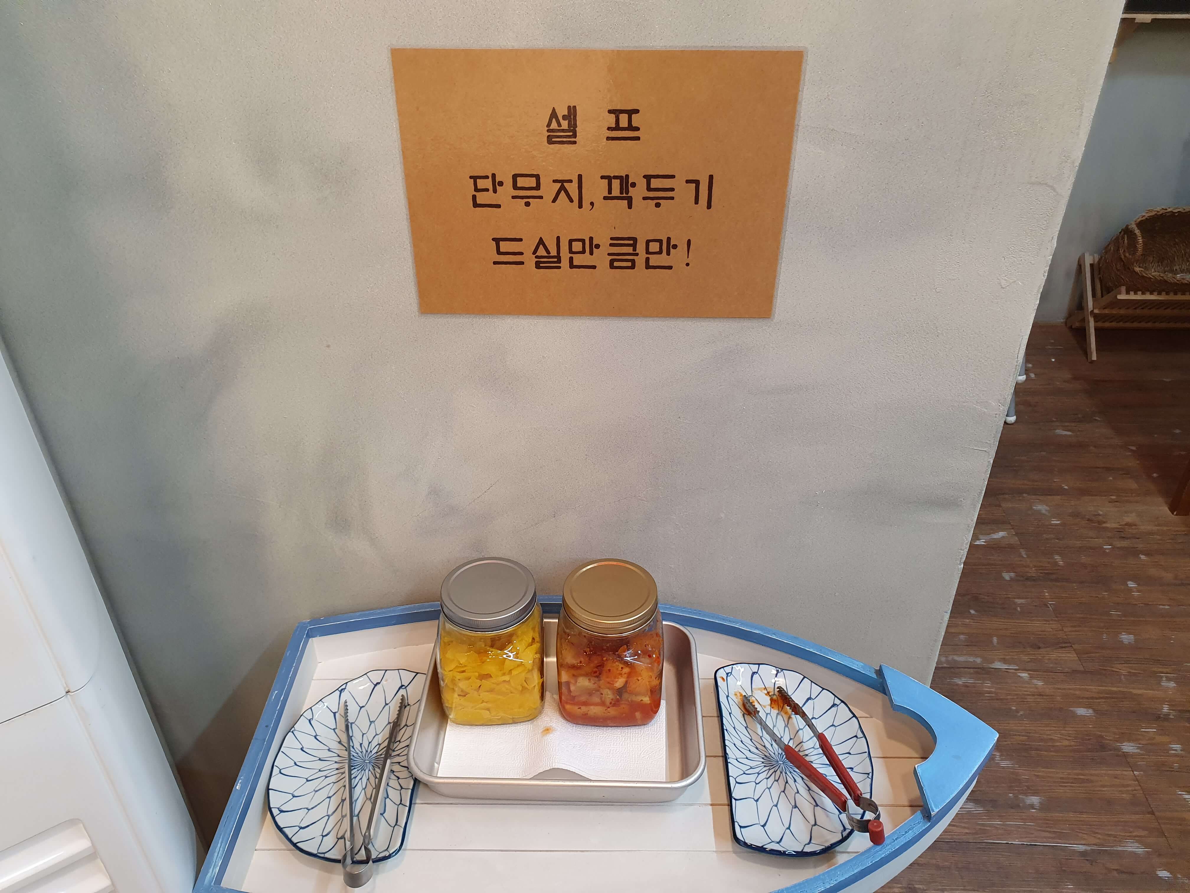깍두기, 단무지는 셀프이며, 드실만큼만 가져가시면 됩니다.