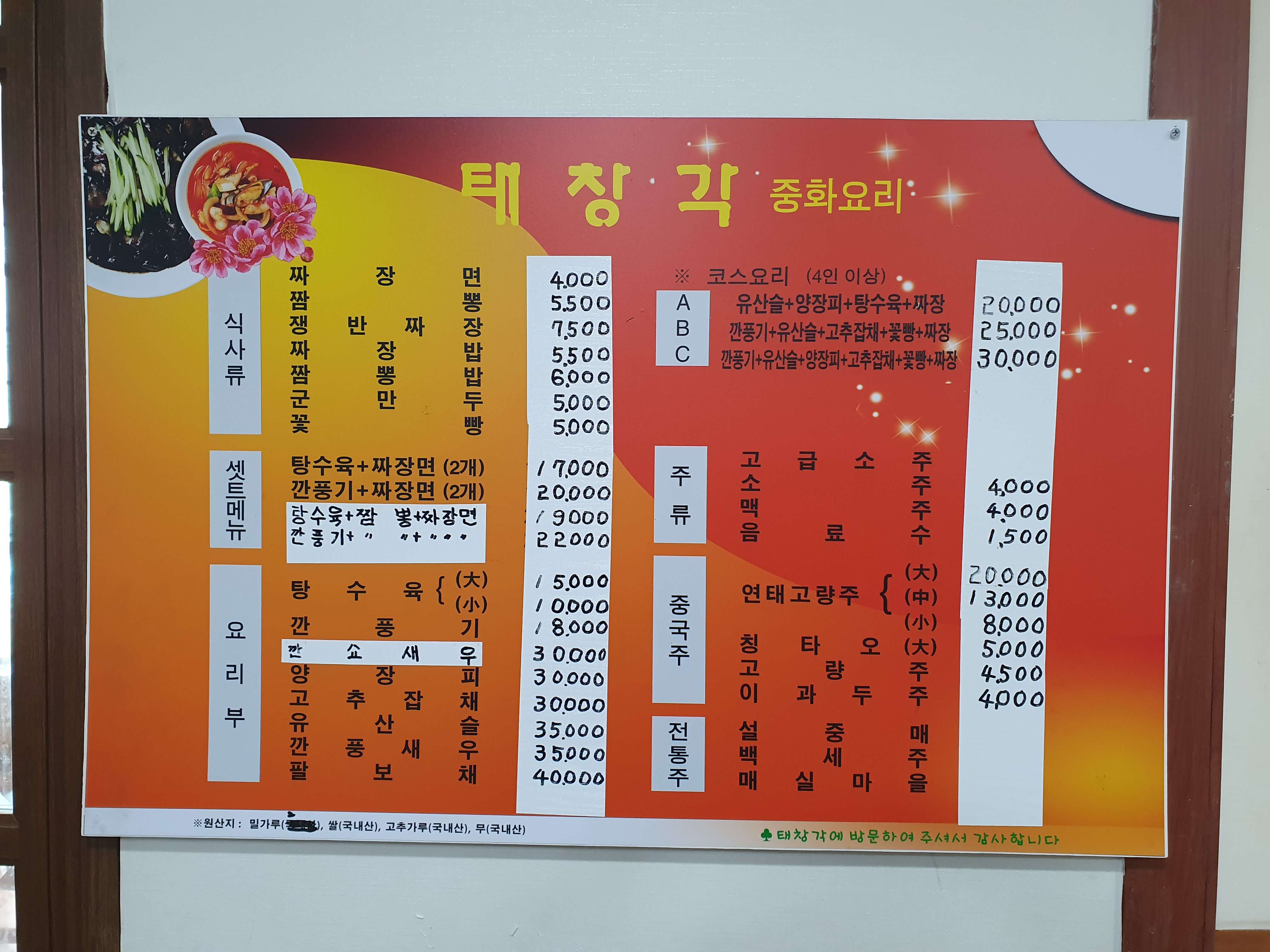 태창각 메뉴