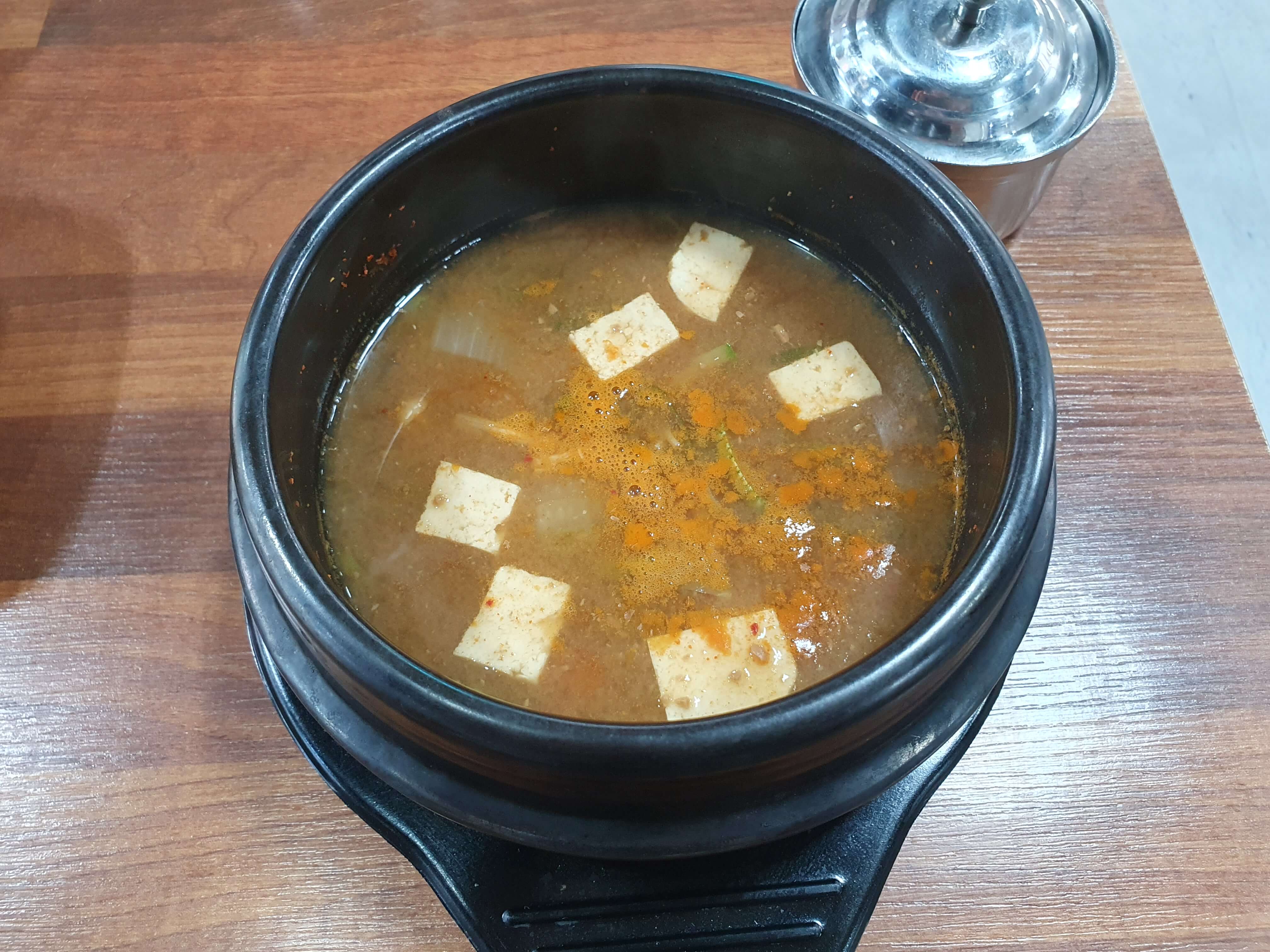 된장찌게에 땡초가 들어가서 살짝 매콤한 맛이 납니다.