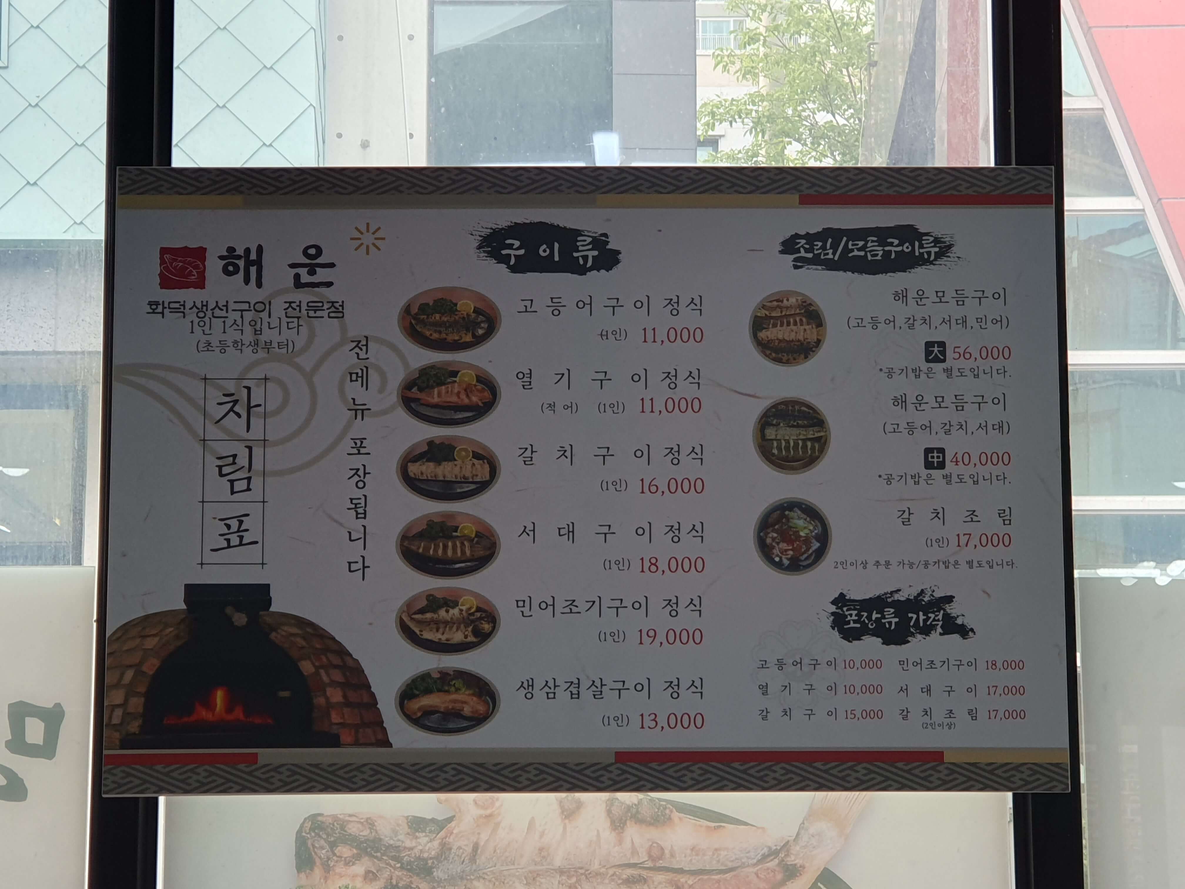 해운화덕생선구이 부산경남본부 메뉴