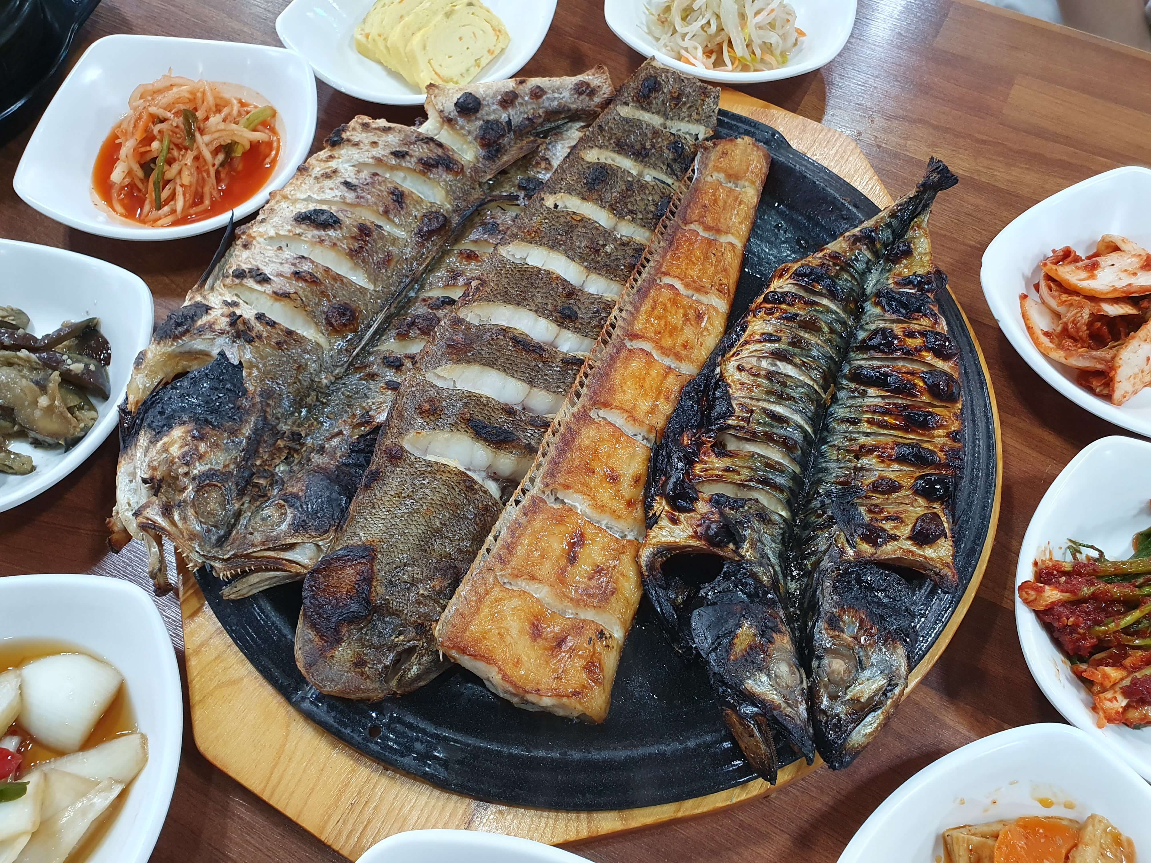 장작 화덕에 구운 생선구이도 맛있지만 반찬들도 다 맛있습니다.