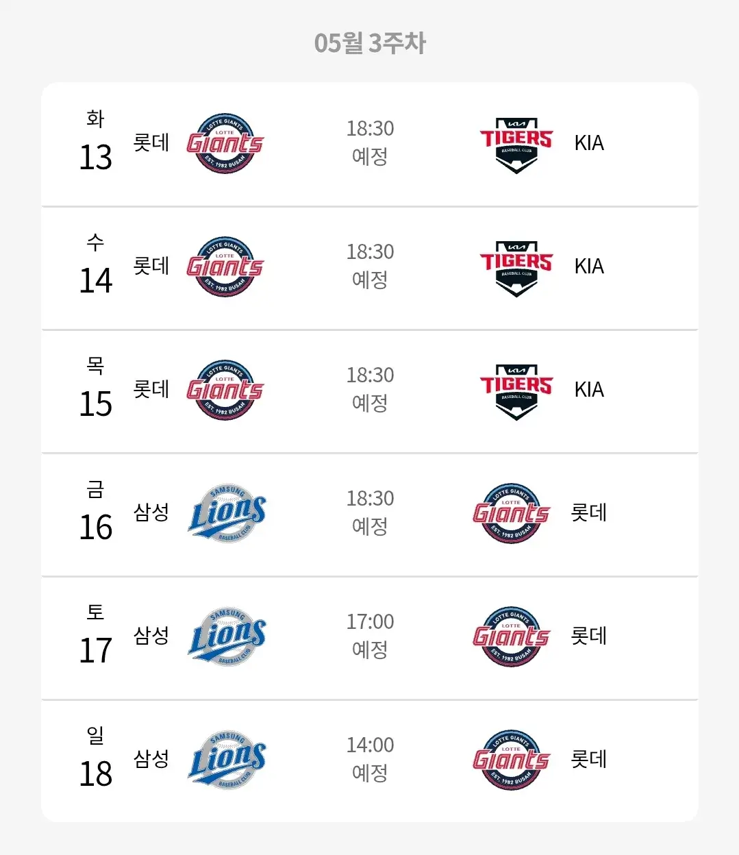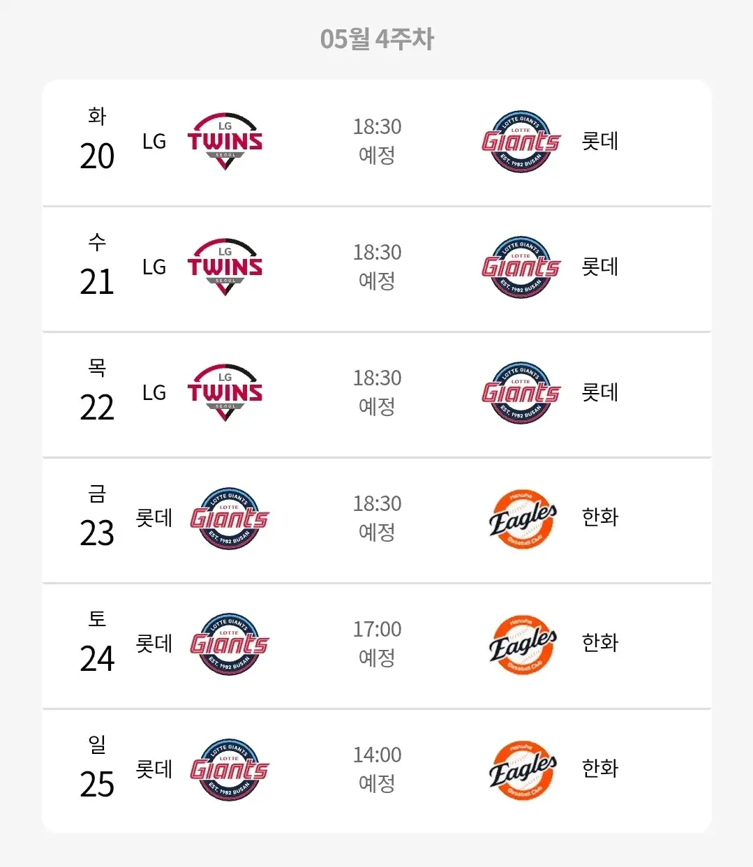 | 기아타이거즈 5월 야구경기 일정, 광주 기아챔피언스필드 (8) | 2025.04.27 |