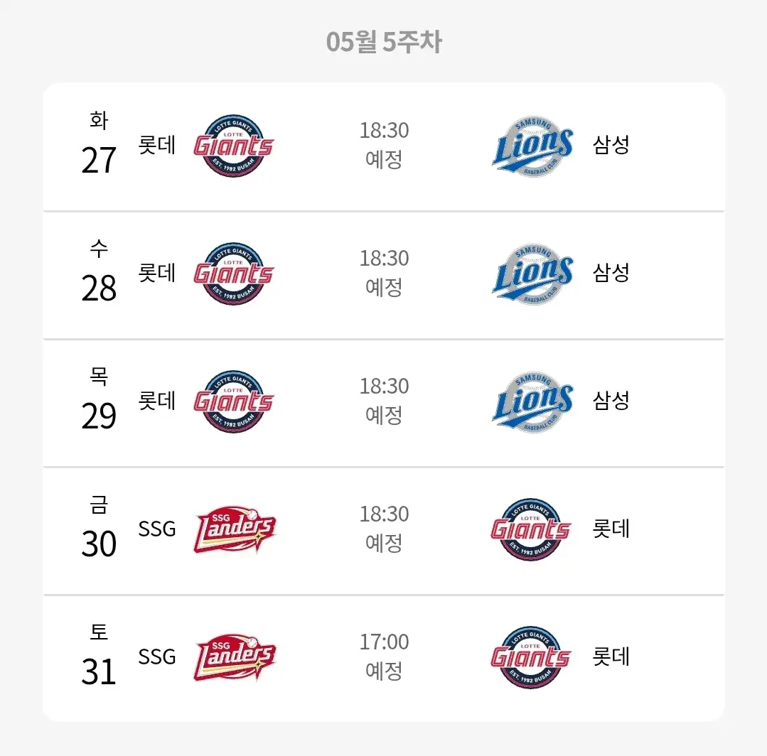 롯데자이언츠 2025년 5월 부산사직종합운동장 사직야구장 야구 경기 일정