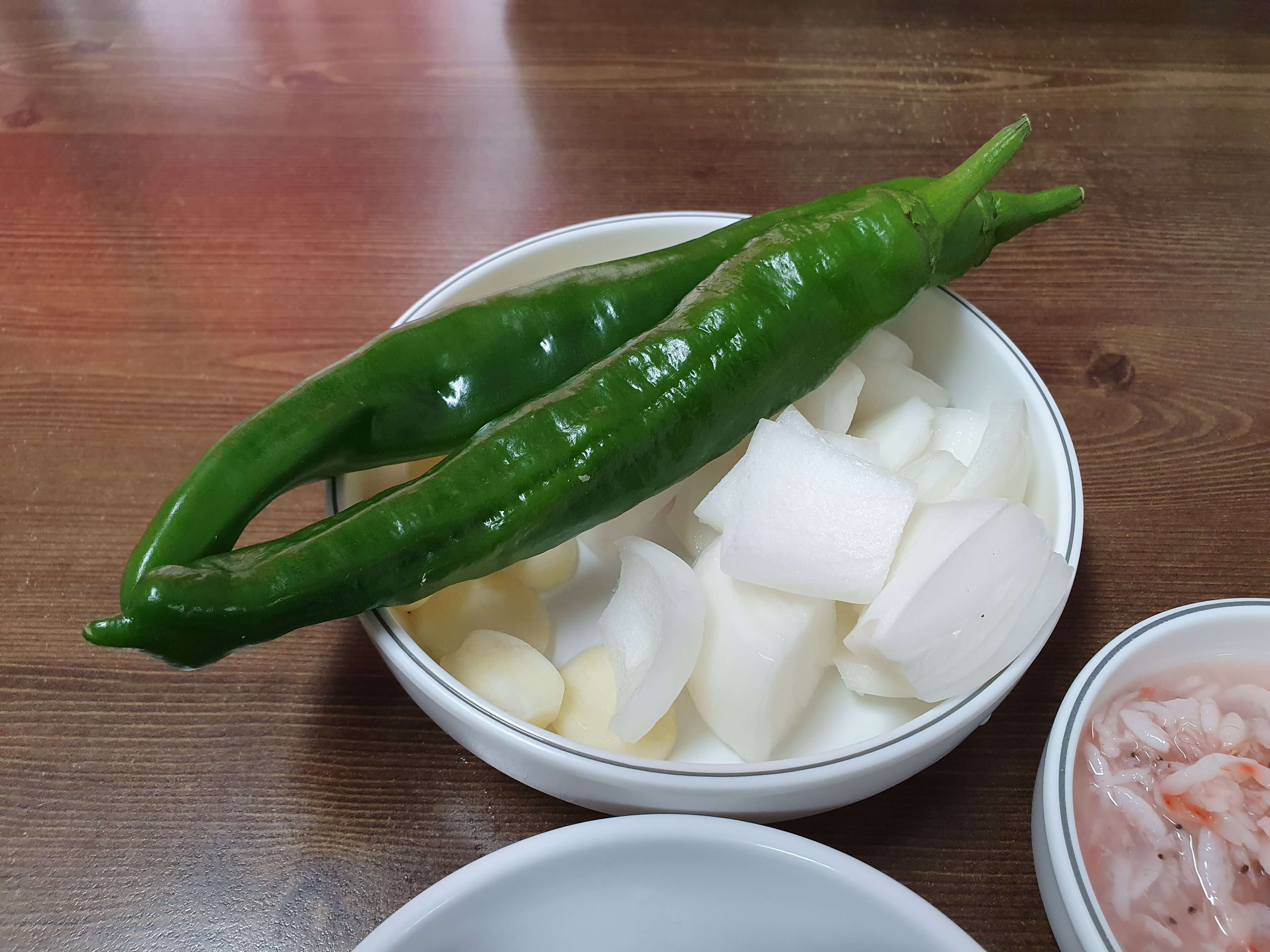 고추가 좀 말라 보이는데 한입 먹어보니 속이 싱싱하고, 맵지 않고, 맛있습니다.