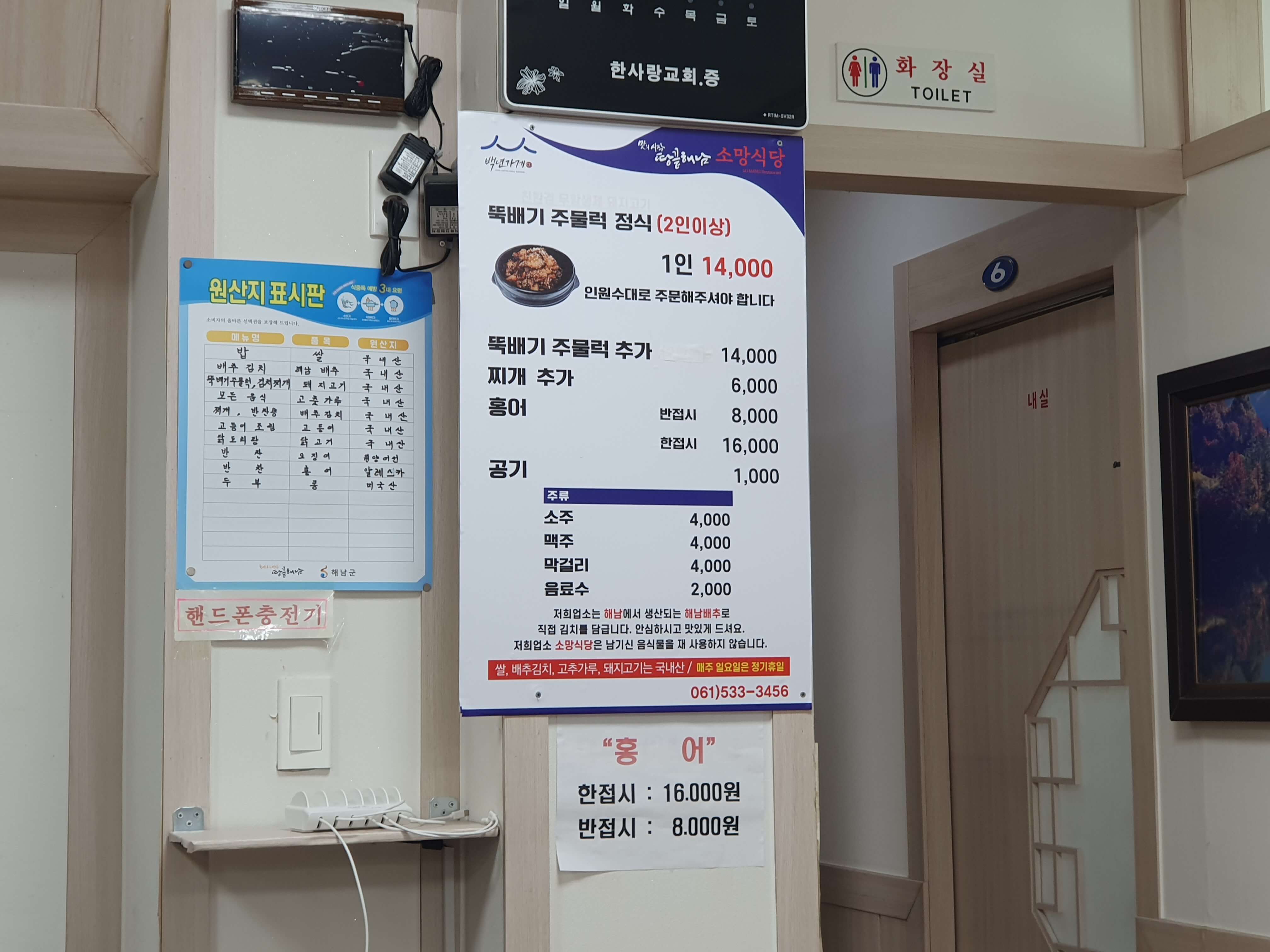 소망식당은 해남고등학교, 해남제일중학교 앞에 위치한 뚝배기주물럭정식과 홍어를 판매하는 식당입니다.