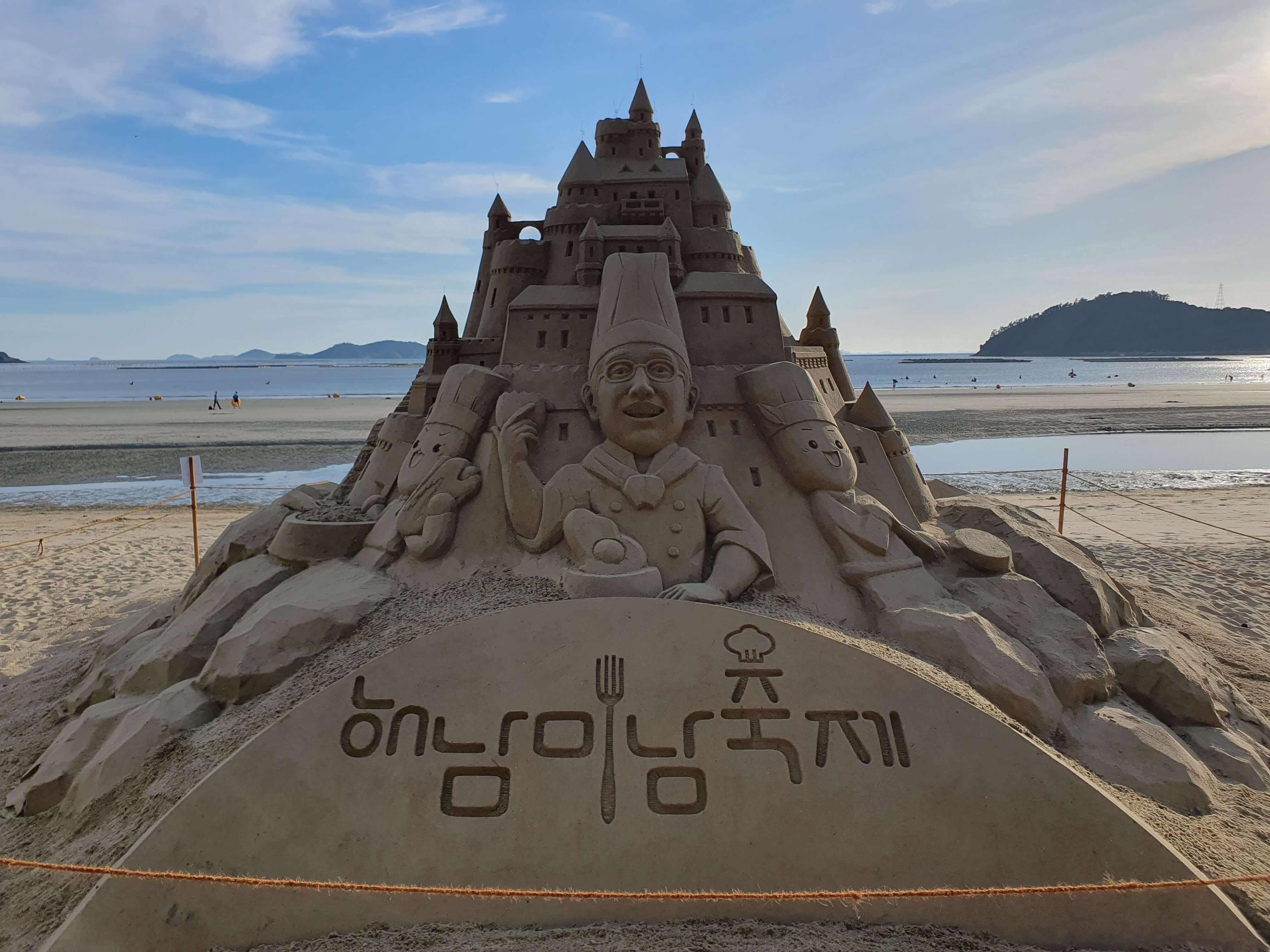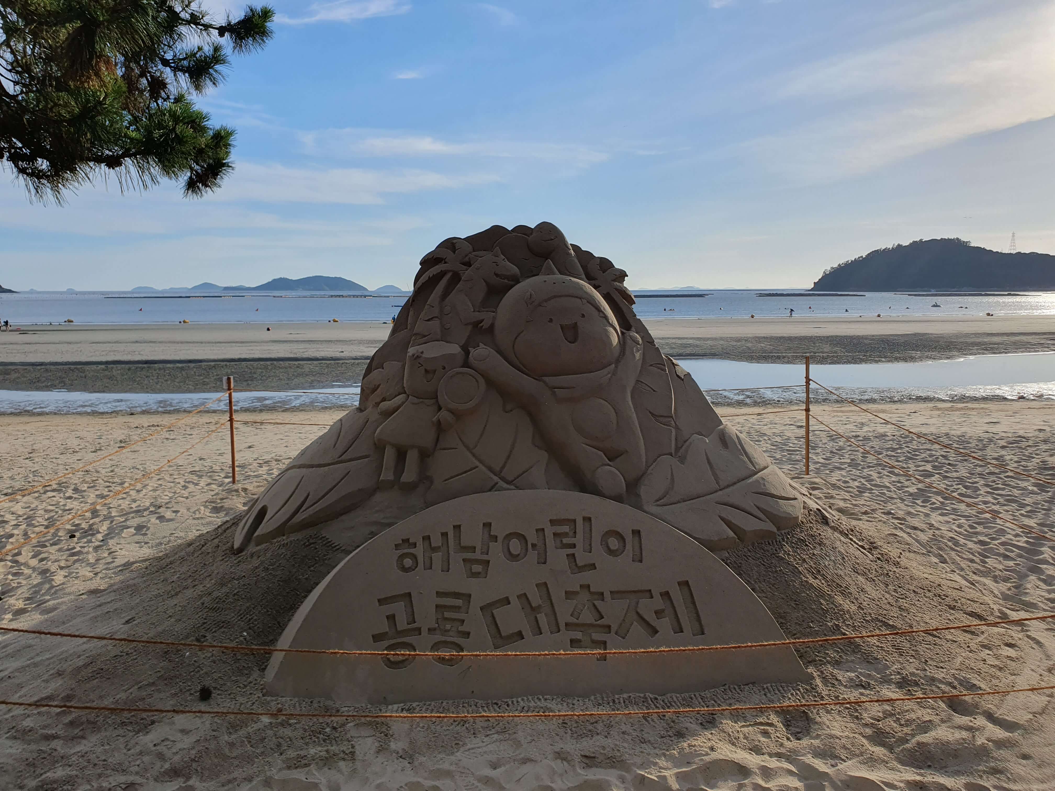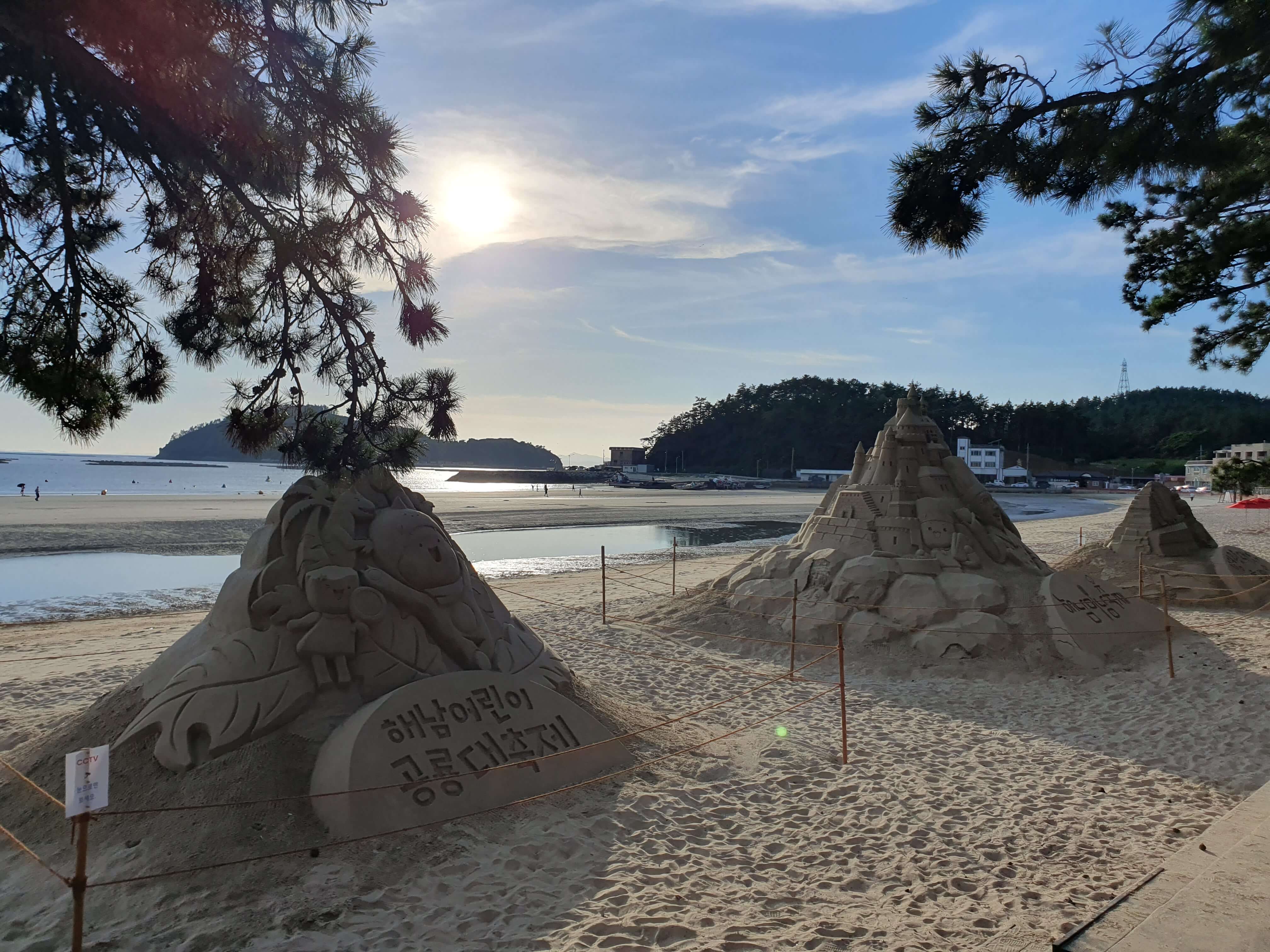 해남에서 진행하는 축제들을 모래조각으로 표현한 작품들이 있습니다.