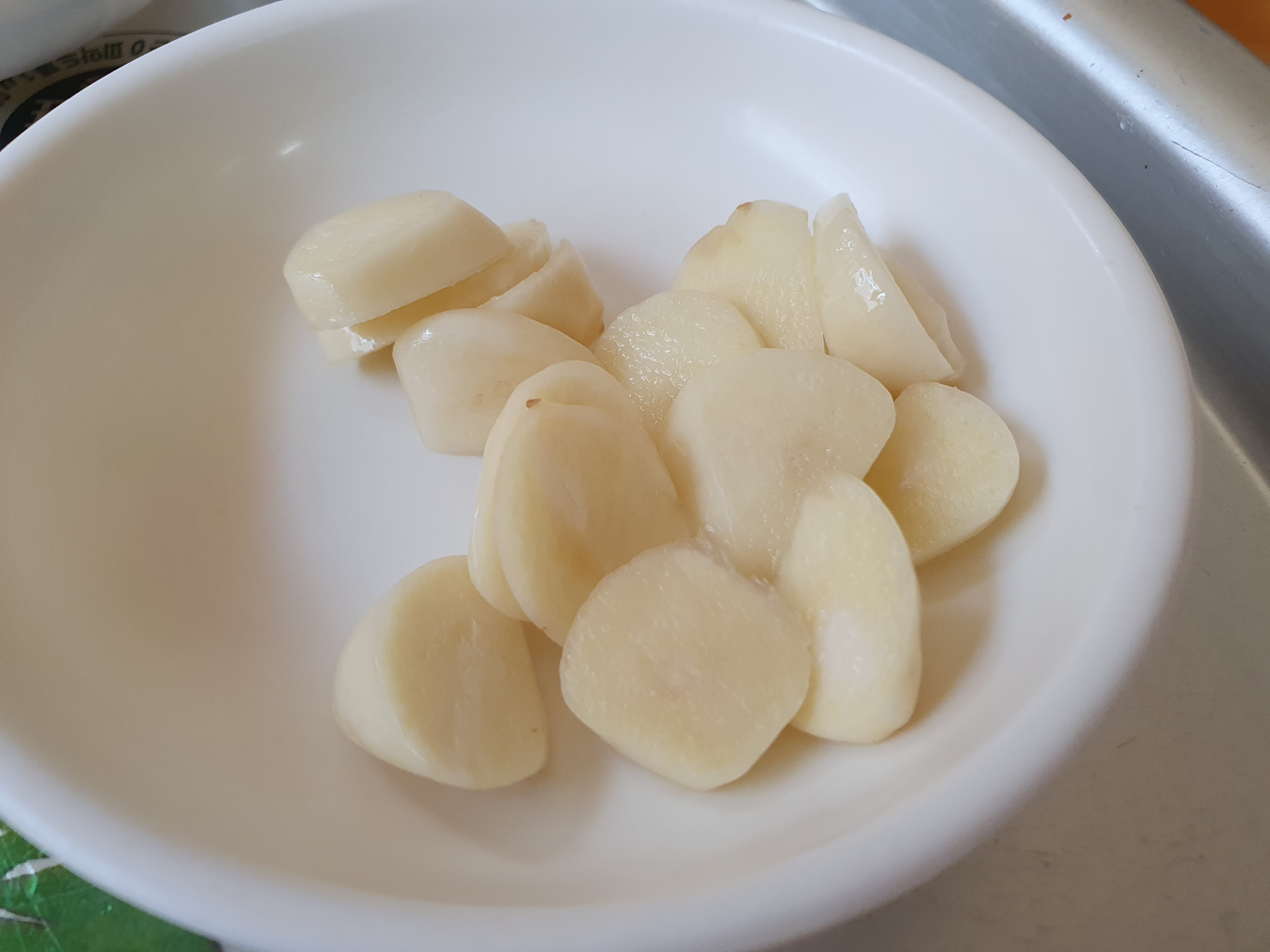 마늘은 매운기가 많이 남아 있어서 국물에 넣어 먹었는데도 매웠습니다.