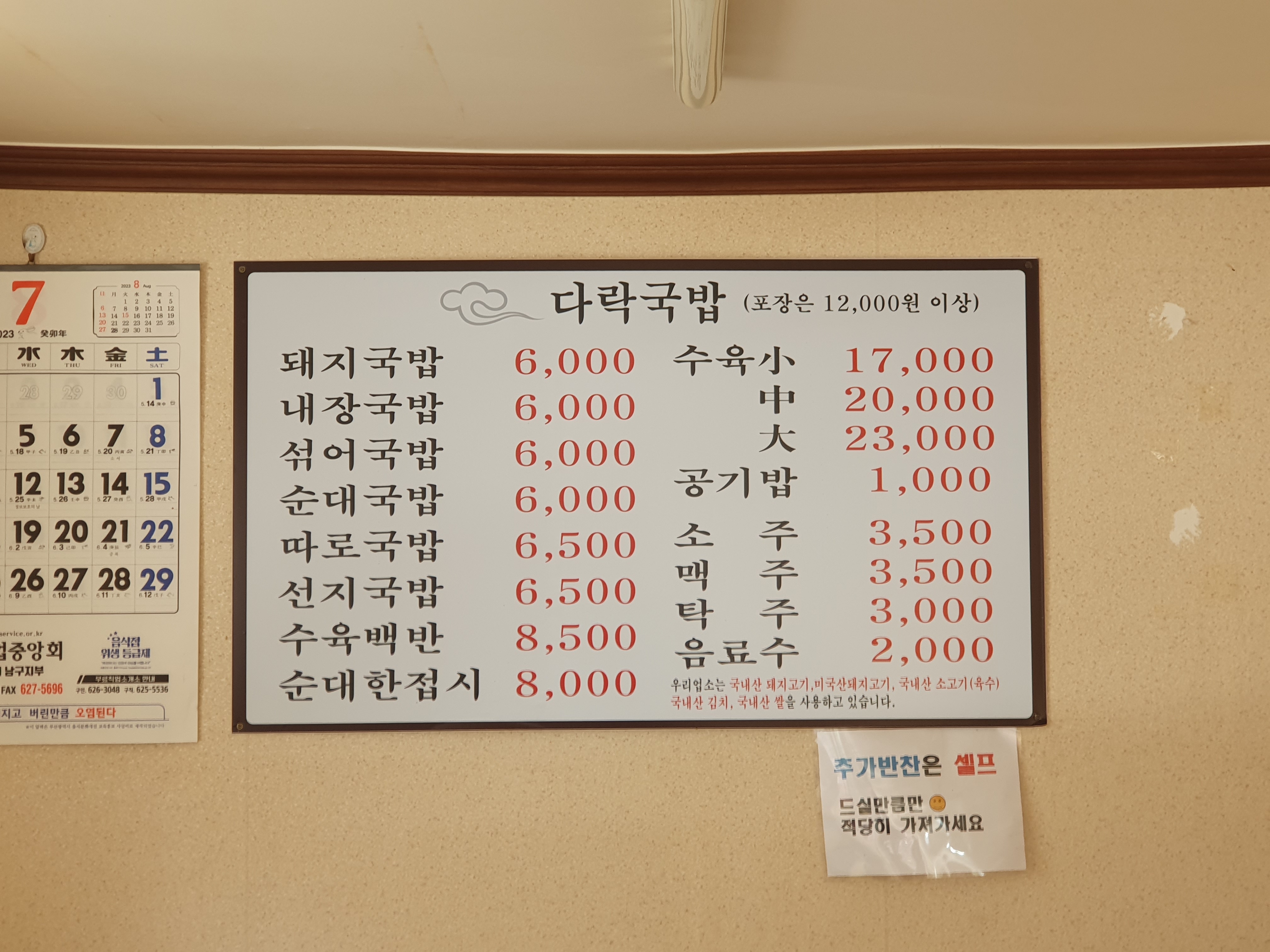 - 주메뉴 : 돼지국밥, 내장국밥, 순대국밥, 수육백반
