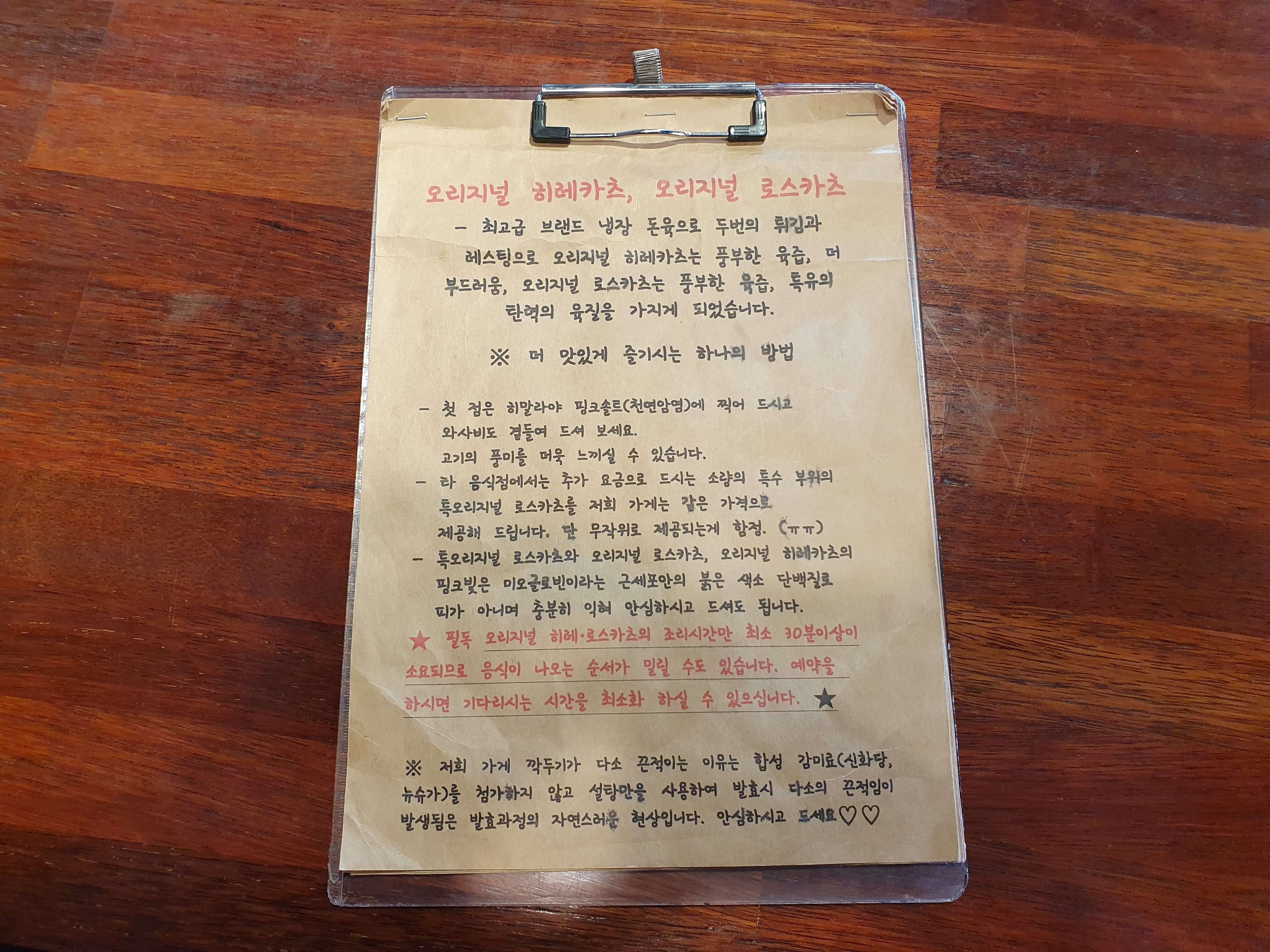 최고급 브랜드 냉장 돈육으로 두번의 튀김과 레스팅으로 오리지널 히레카츠는 풍부한 육즙, 더 부드러움, 오리지널 로스카츠는 풍부한 육즙, 특유의 탄력의 육질을 가지게 되었다고 합니다.