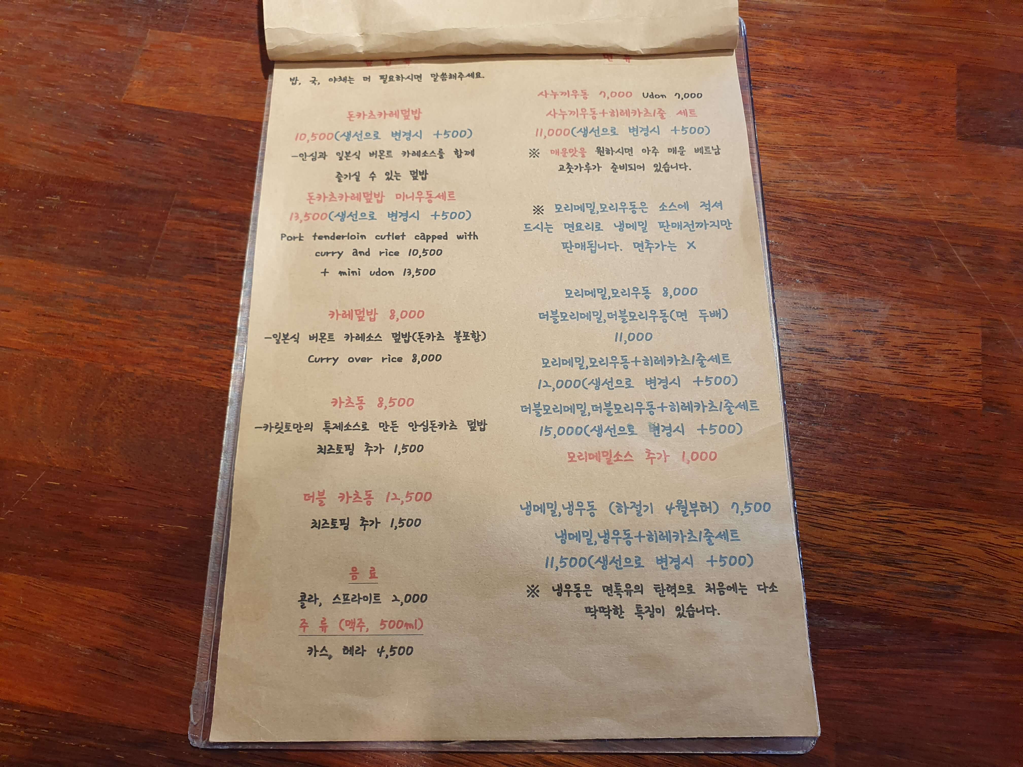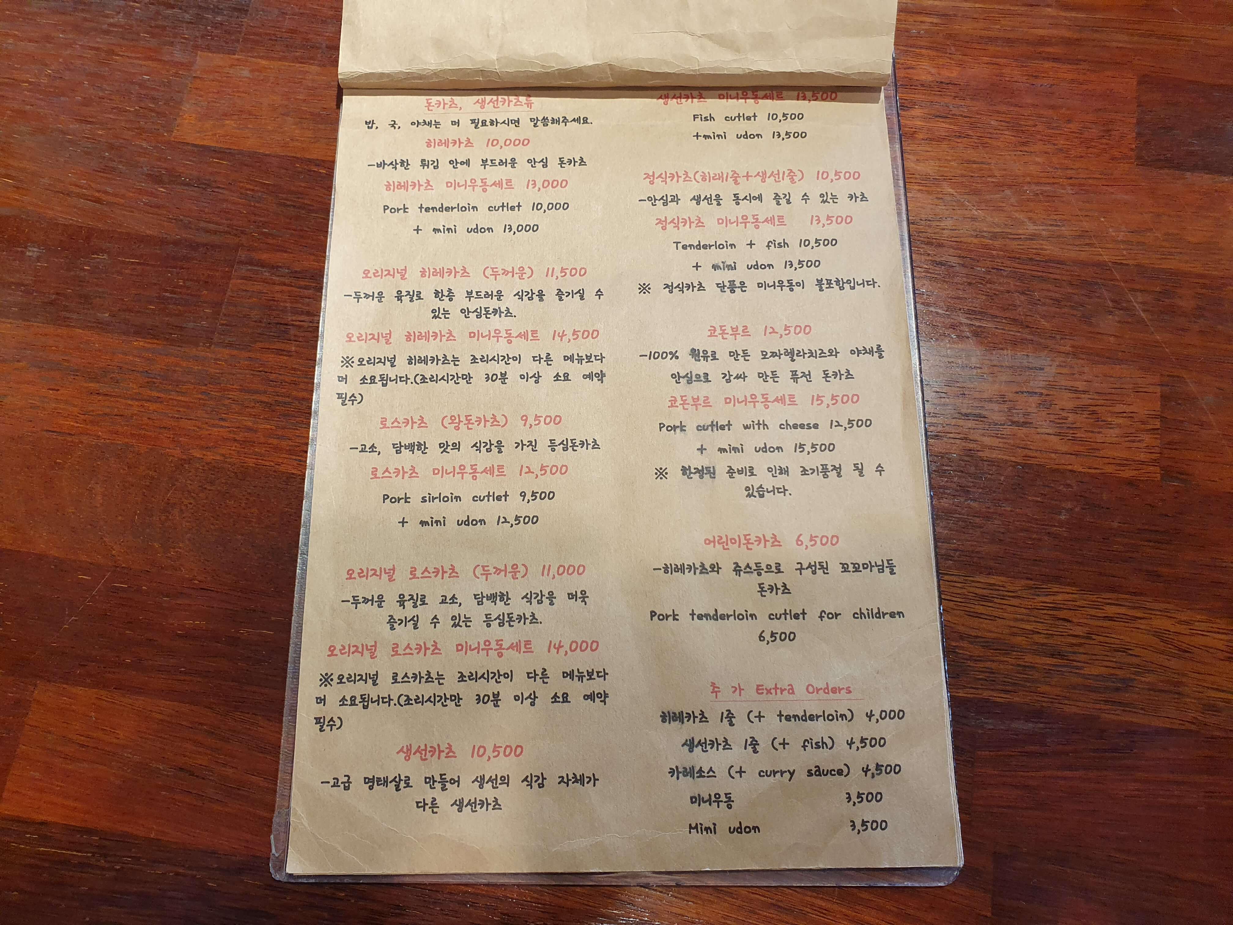 - 주메뉴 : 돈카츠, 생선카츠, 코돈부르, 카츠동, 카레덮밥, 우동, 메밀