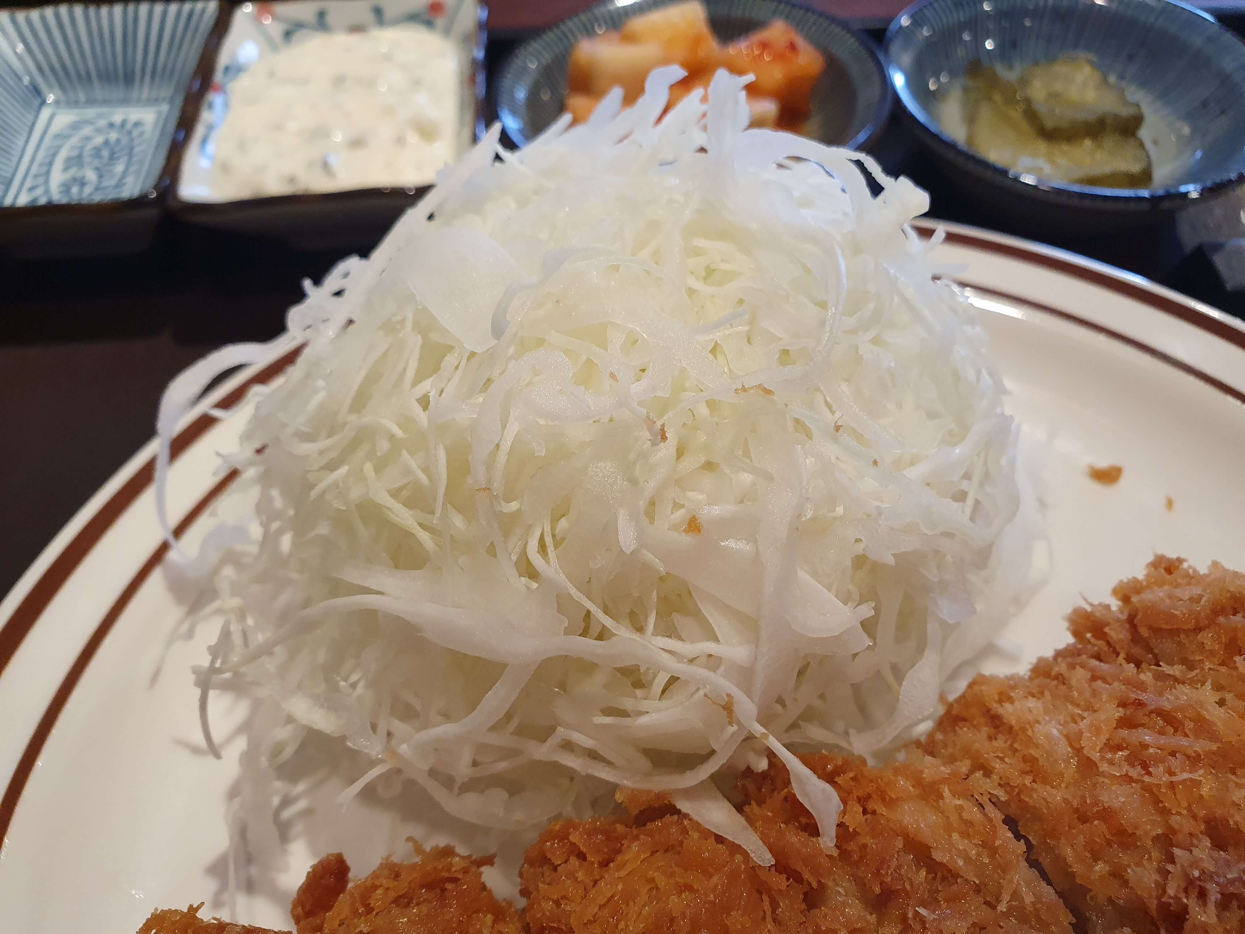 양배추샐러드 추가는 무료이며, 추가 요청시 상당히 많은 양을 줘서 기분이 좋았습니다.