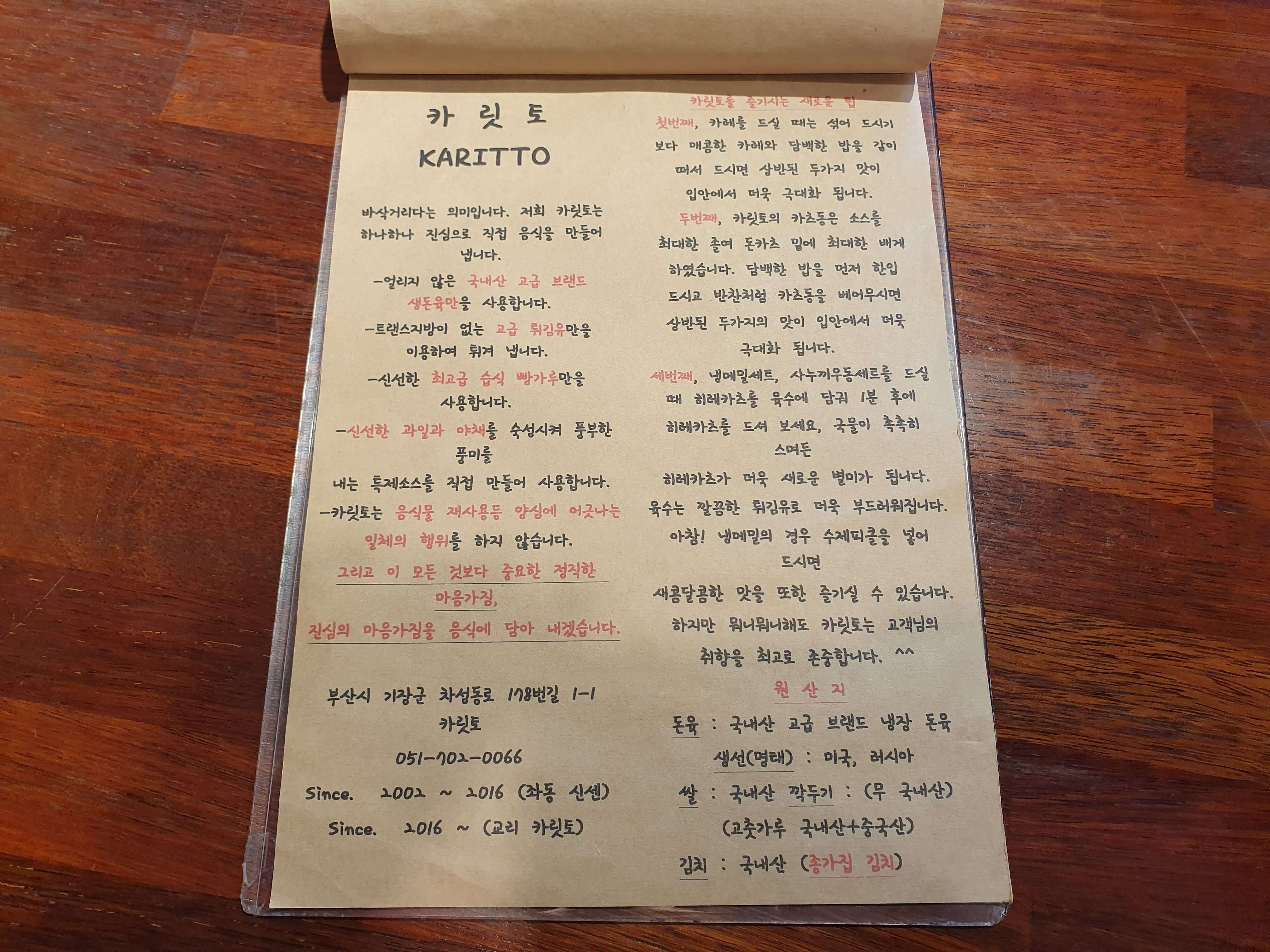 카릿토는 기장도서관, 교리초등학교 사이에 있는 돈까스, 생선까스, 우동, 메밀을 판매하는 식당입니다.
