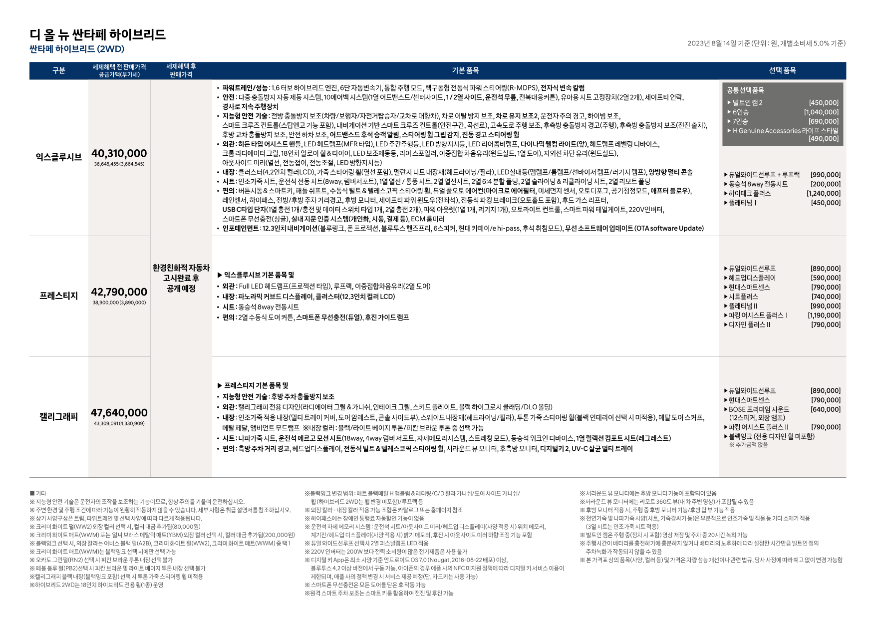 디 올 뉴 싼타페 가격, 디자인, 스펙, 실내·실외 인테리어, 연비, 옵션, 제원, 출력, 치수, 토크, 패키지