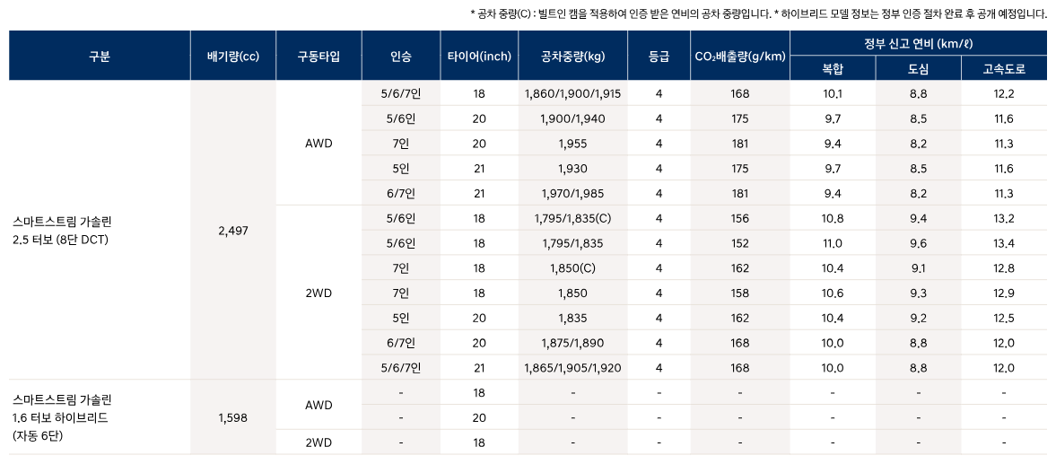 | 구분 | 스마트스트림 가솔린 2.5 터보 |