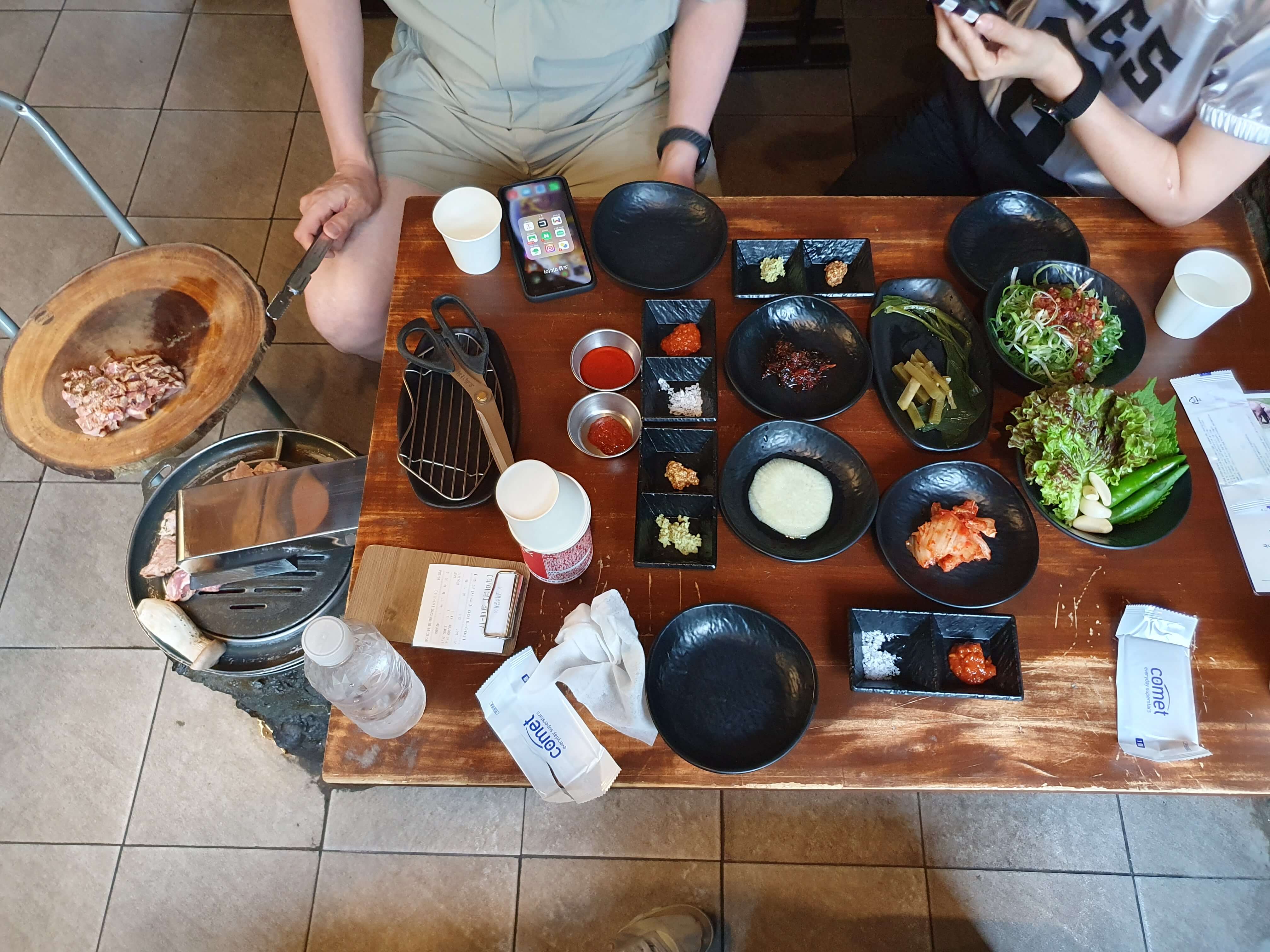 고기를 굽는 화로가 테이블에 있지 않고, 테이블 옆에 있어서 좋았지만, 높이가 낮아서 살짝 아쉬웠습니다.
