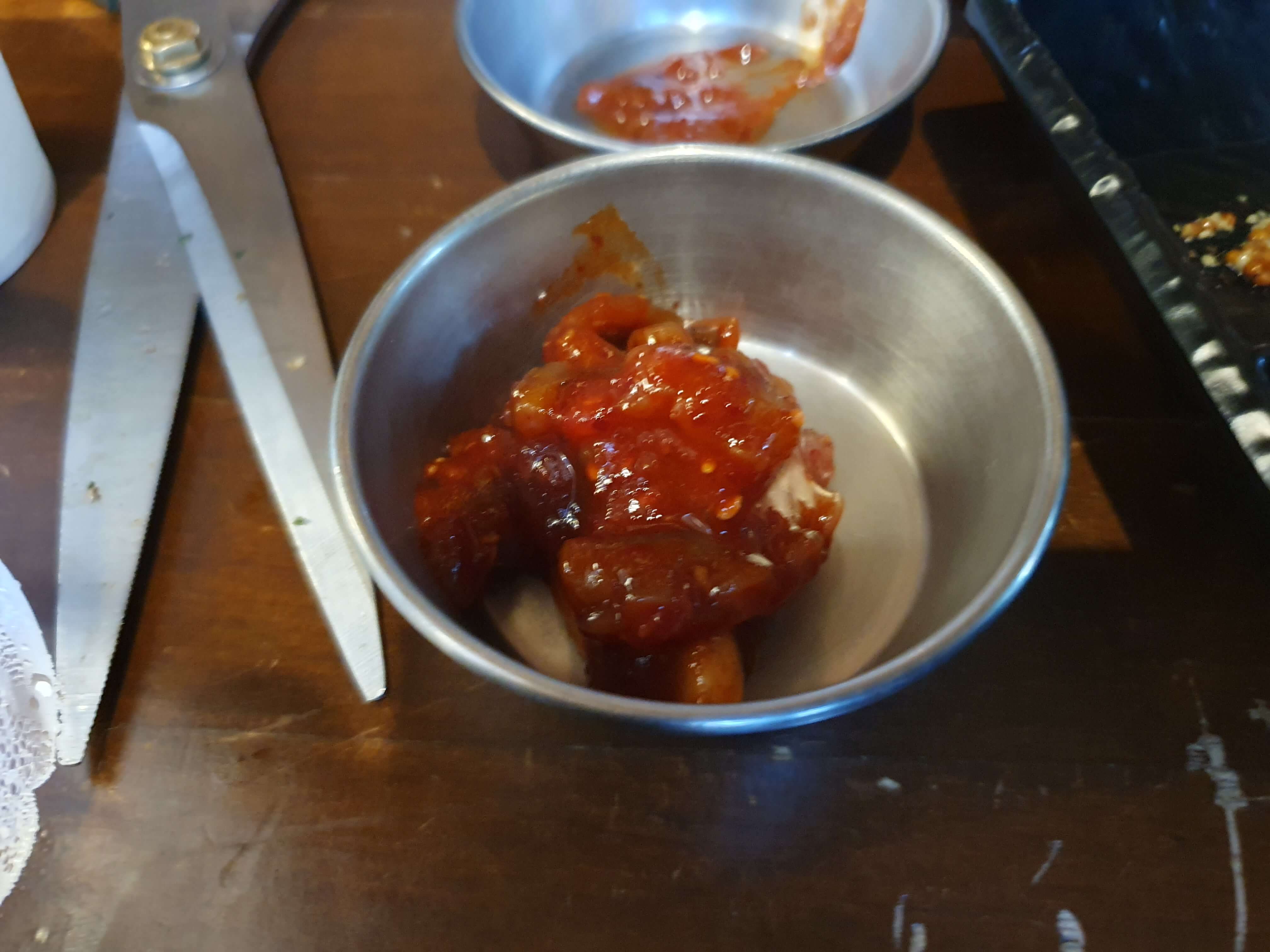 식사 메뉴를 주문하면 오징어젓갈이 추가로 나옵니다.