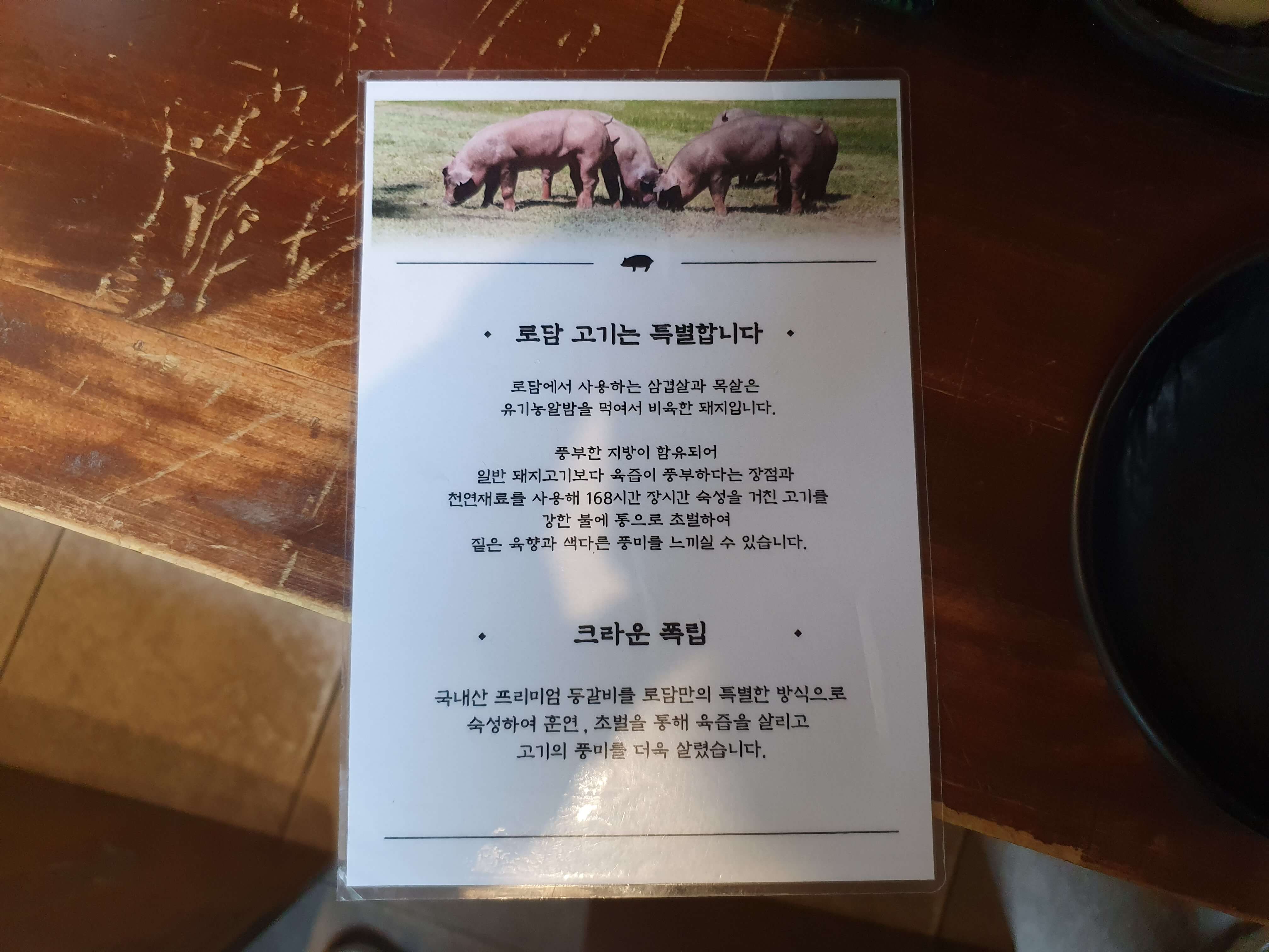 로담에서 사용하는 삼겹살과 목살은 유기농알밤을 먹여서 비육한 돼지라고 합니다.