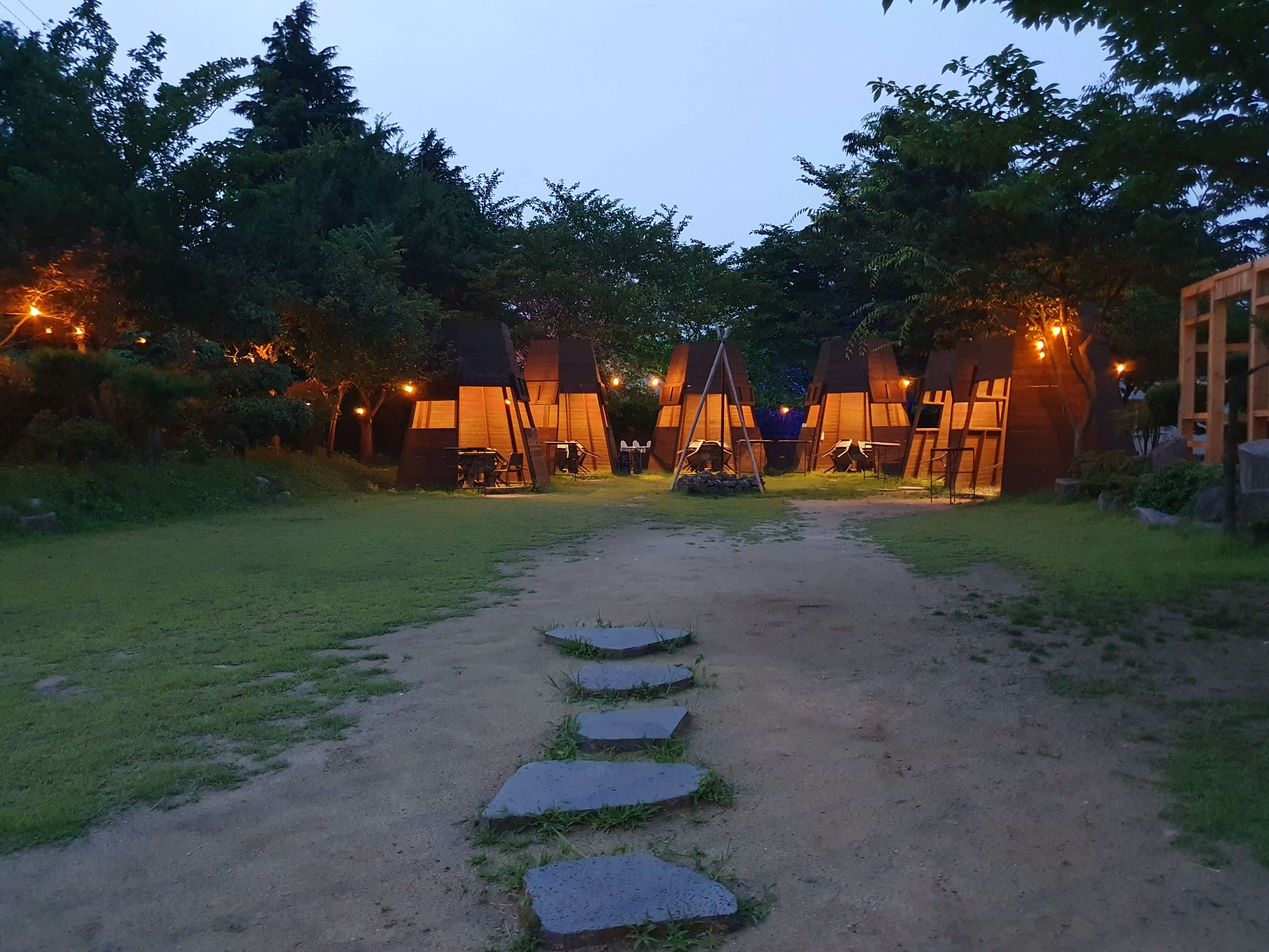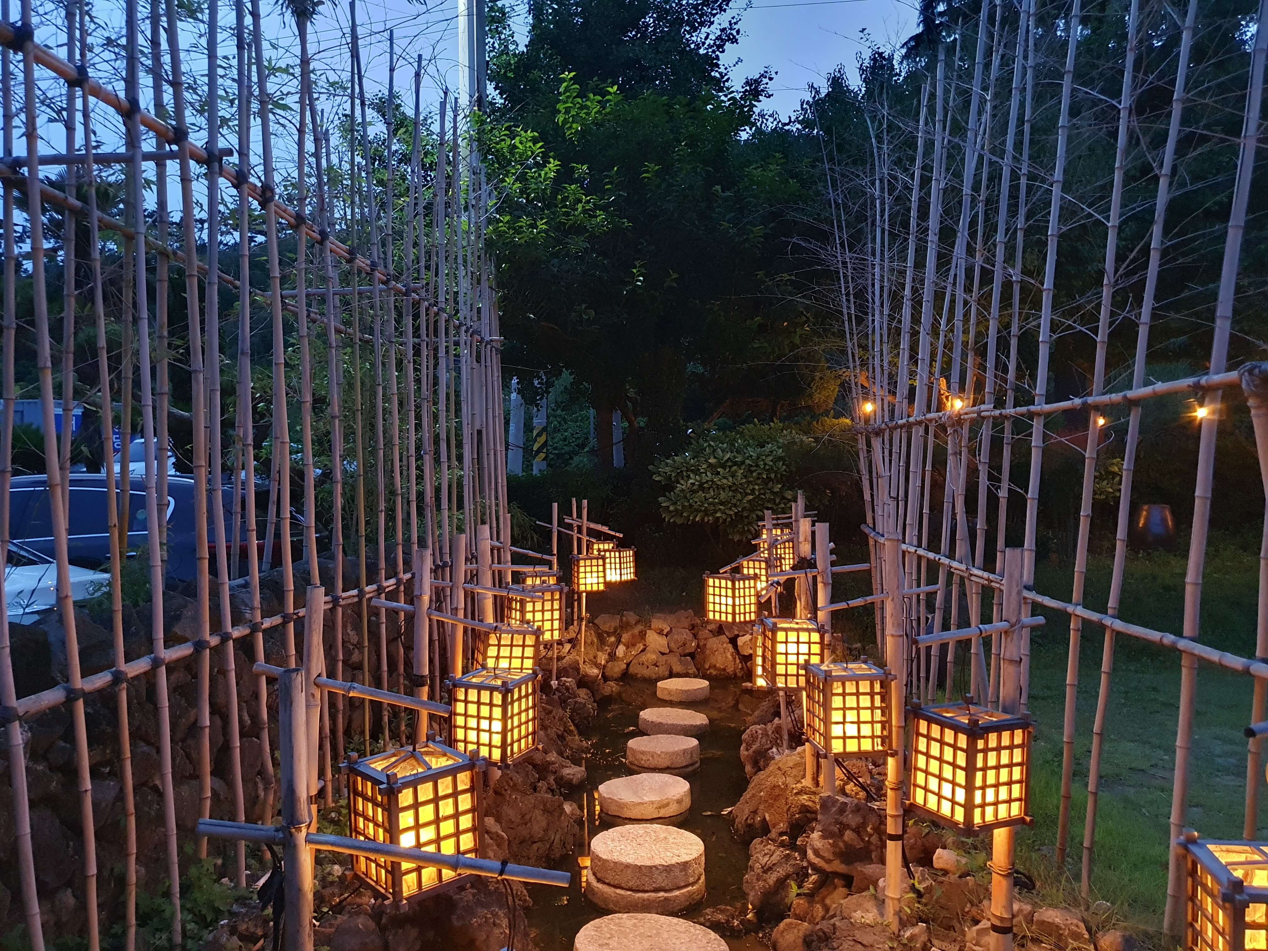식당 입구 앞에 있는 길인데 낮에는 별로였는데 조명이 있으니 분위기가 살아납니다.