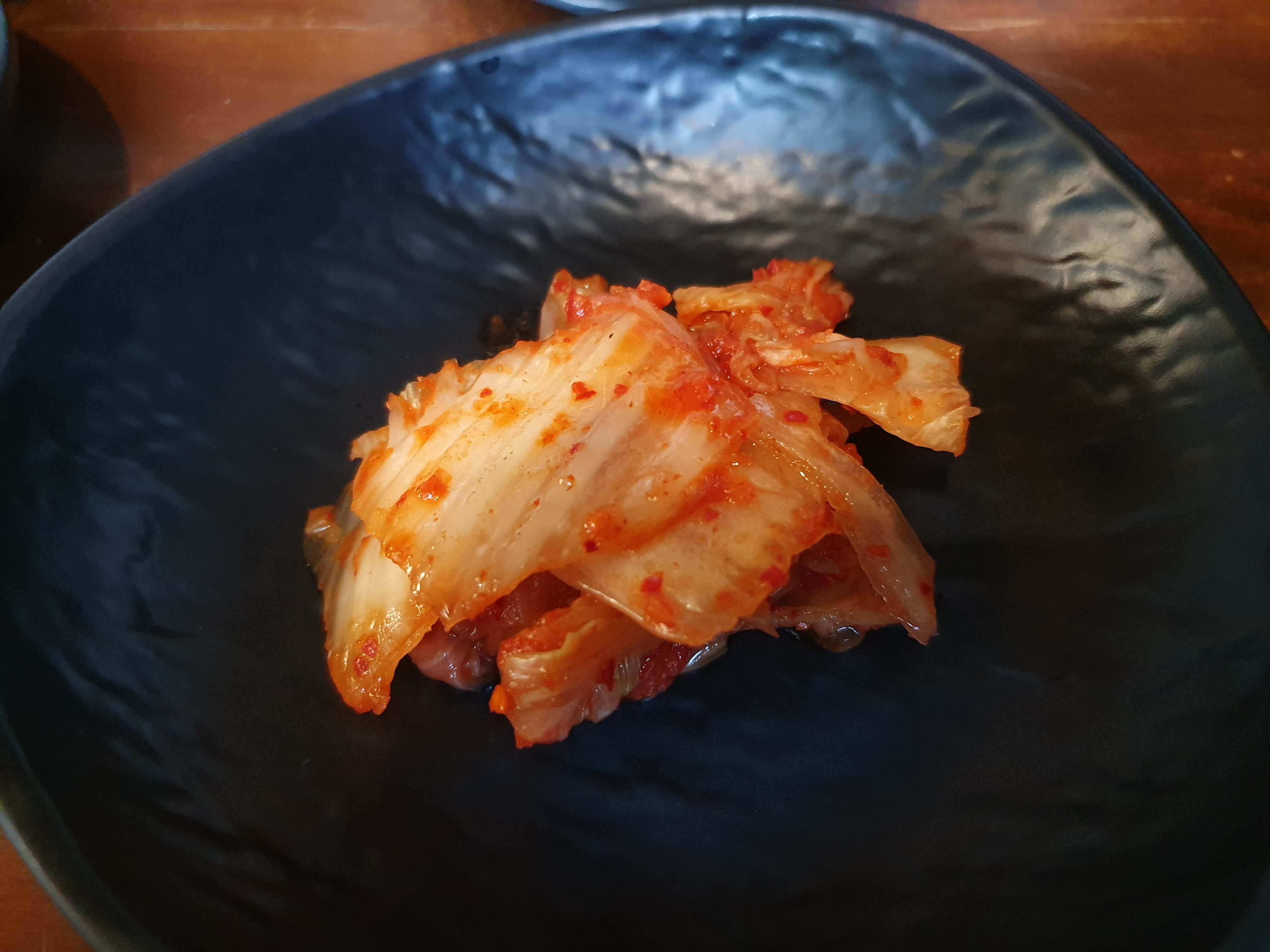 반찬으로는 김치, 갓김치, 무쌈(무쌈), 명이나물이 제공됩니다.