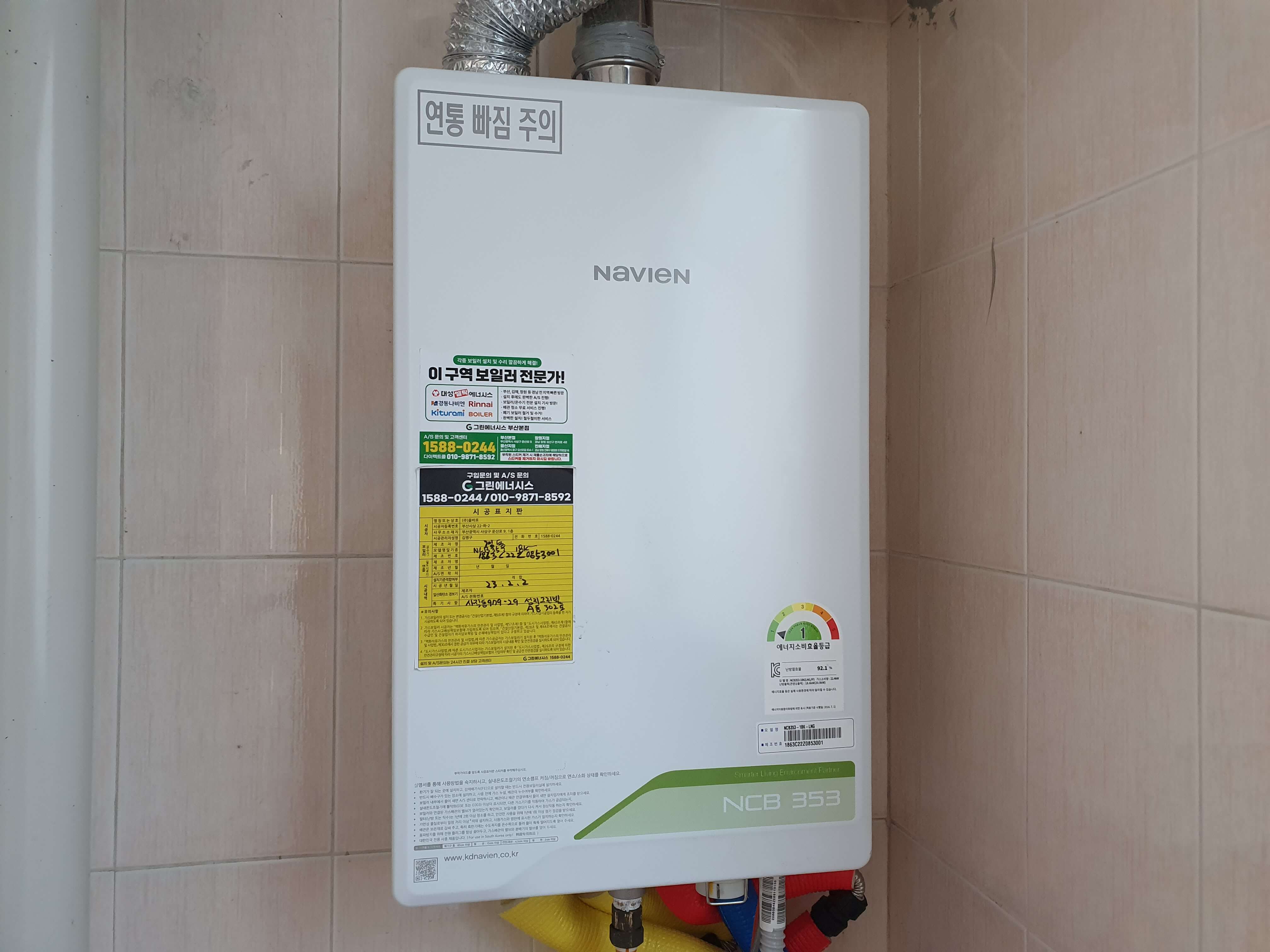 노후되고 고장 난 린나이 보일러(RB-165TKF)를 경동나비엔 콘덴싱 가스보일러(NCB353-18K)로 교체
