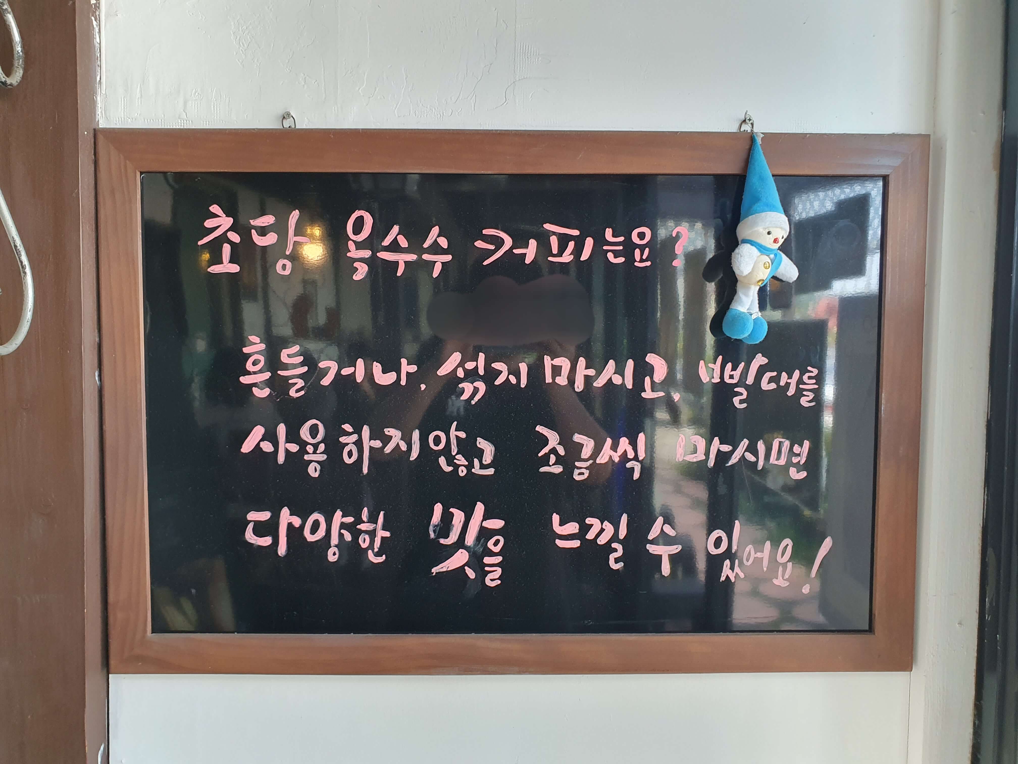 시그니처 메뉴인 초옥이커피(초당 옥수수 커피)를 마시는 방법입니다.