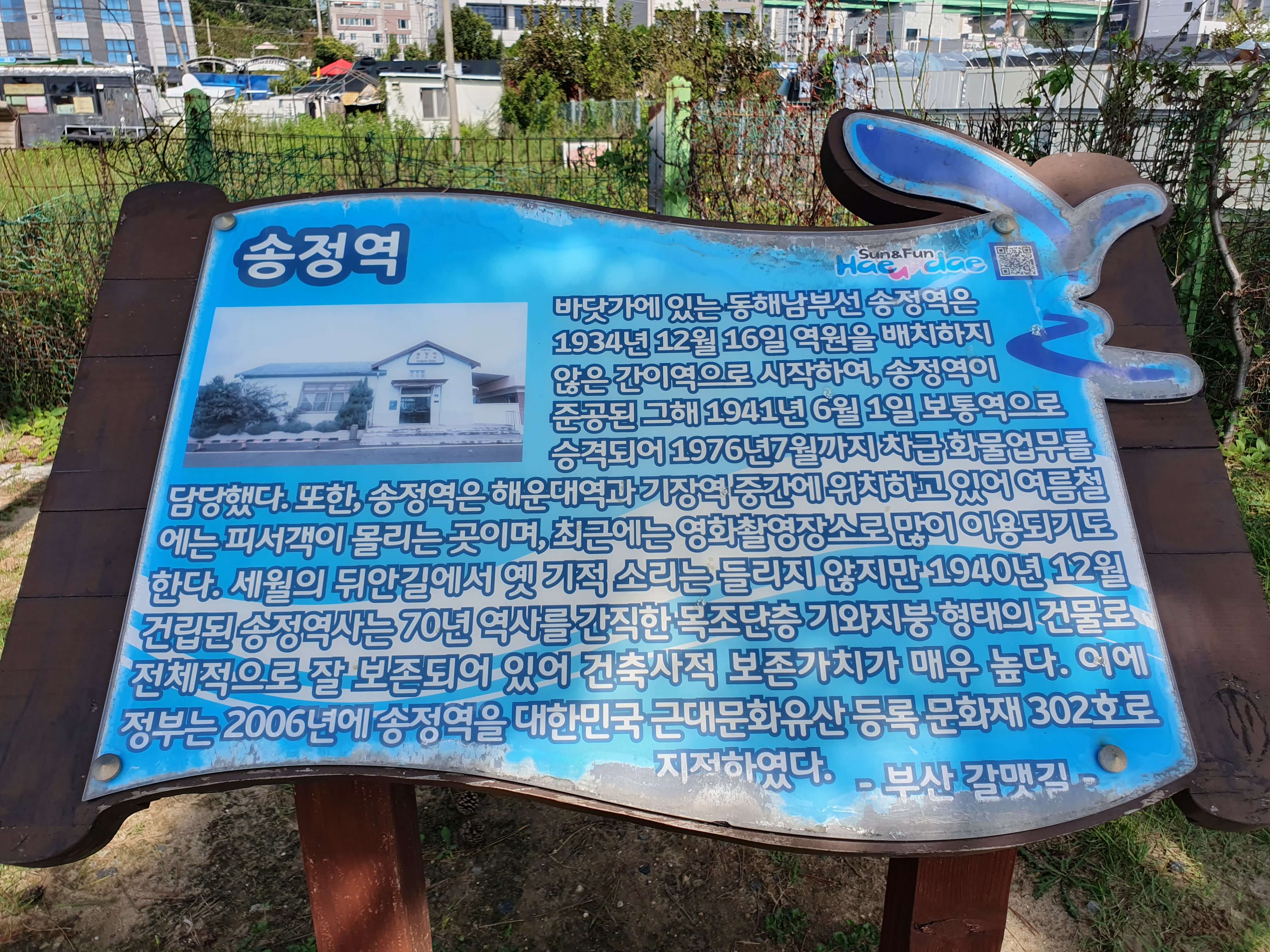 이에 정부는 2006년에 송정역을 대한민국 근대문화유산 등록문화재 302호로 지정하였다.