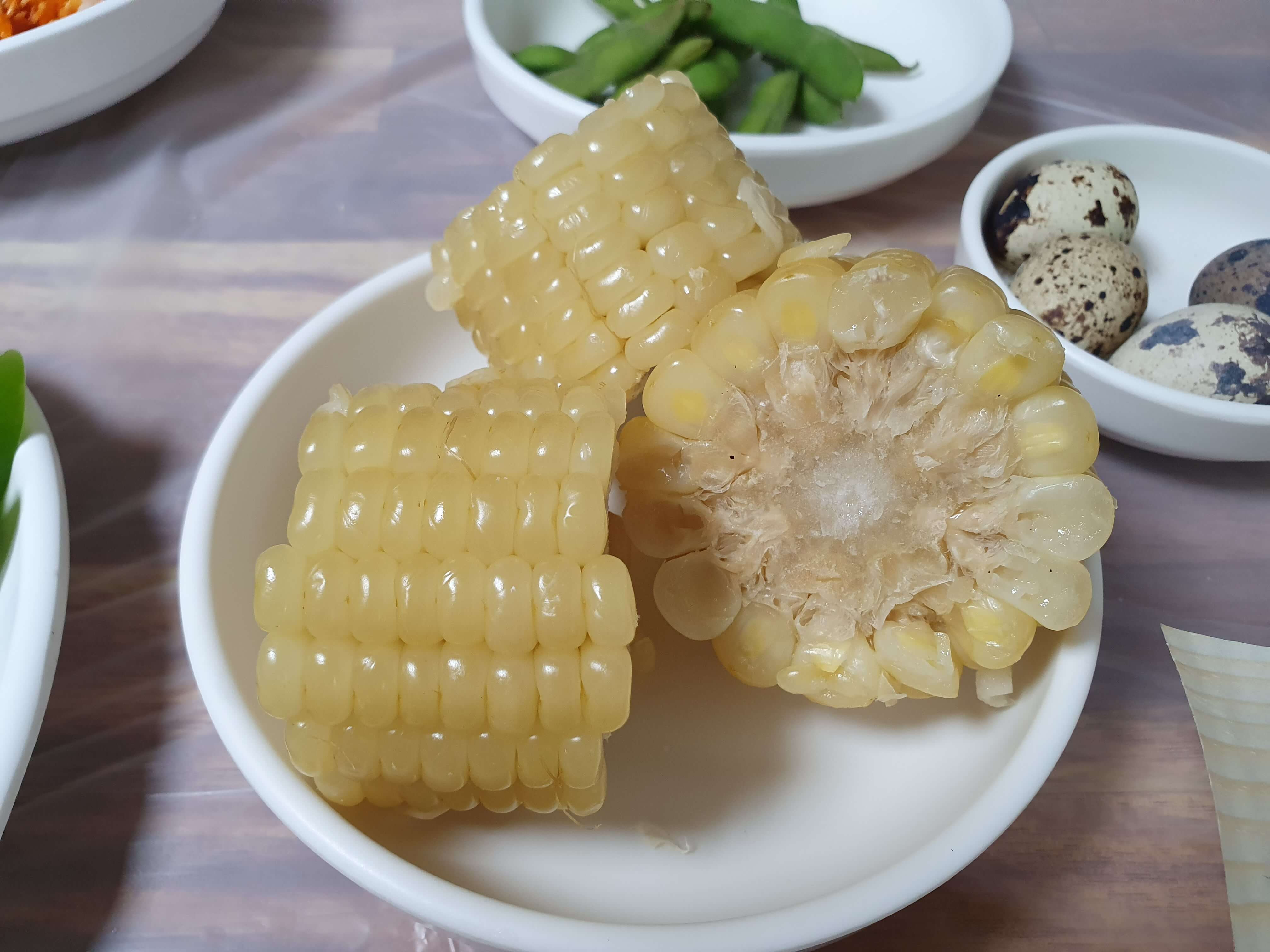 같이 제공되는 찐옥수수, 풋콩, 메추리알도 입의 심심함을 맛있게 잘 달래줍니다.